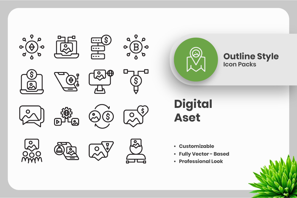 25 Set of Digital Assets Outline Icon Collection Icon Set