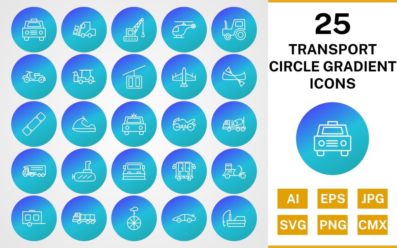 Download this premium 25 Transport Circle Gradient Pack Icon Set published on TemplateMonster.