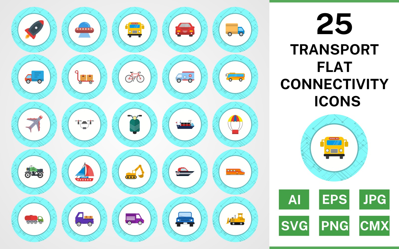 Download this premium 25 Transport Flat Connectivity Icon Set published on TemplateMonster.