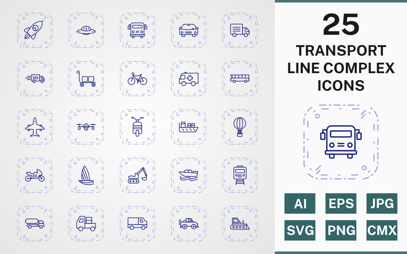 25 TRANSPORT LINE COMPLEX PACK Icon Set