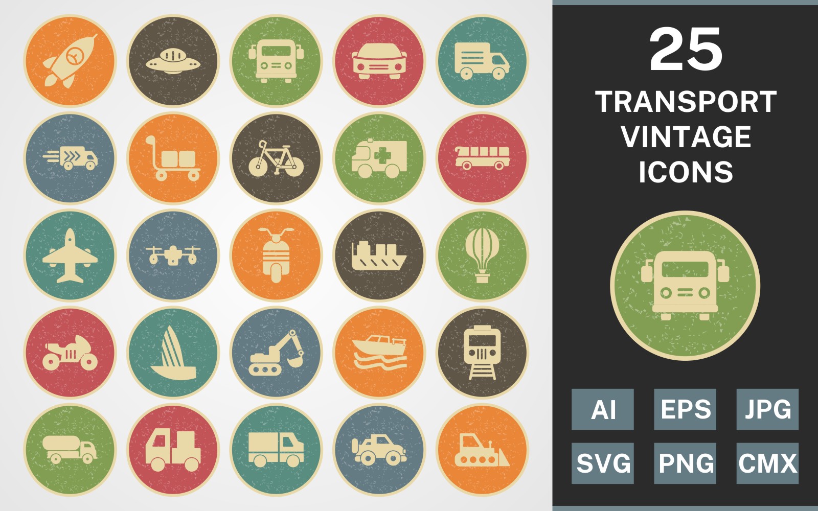 Download this premium 25 TRANSPORT VINTAGE PACK Icon Set published on TemplateMonster.