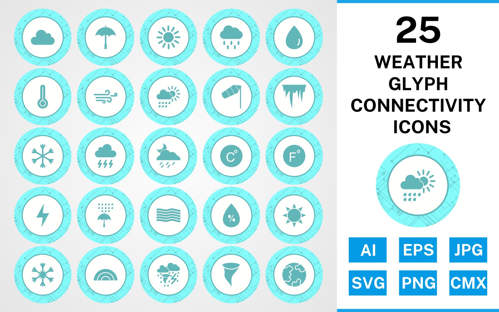 Download this premium 25 Weather Glyph Connectivity Icon Set published on TemplateMonster.