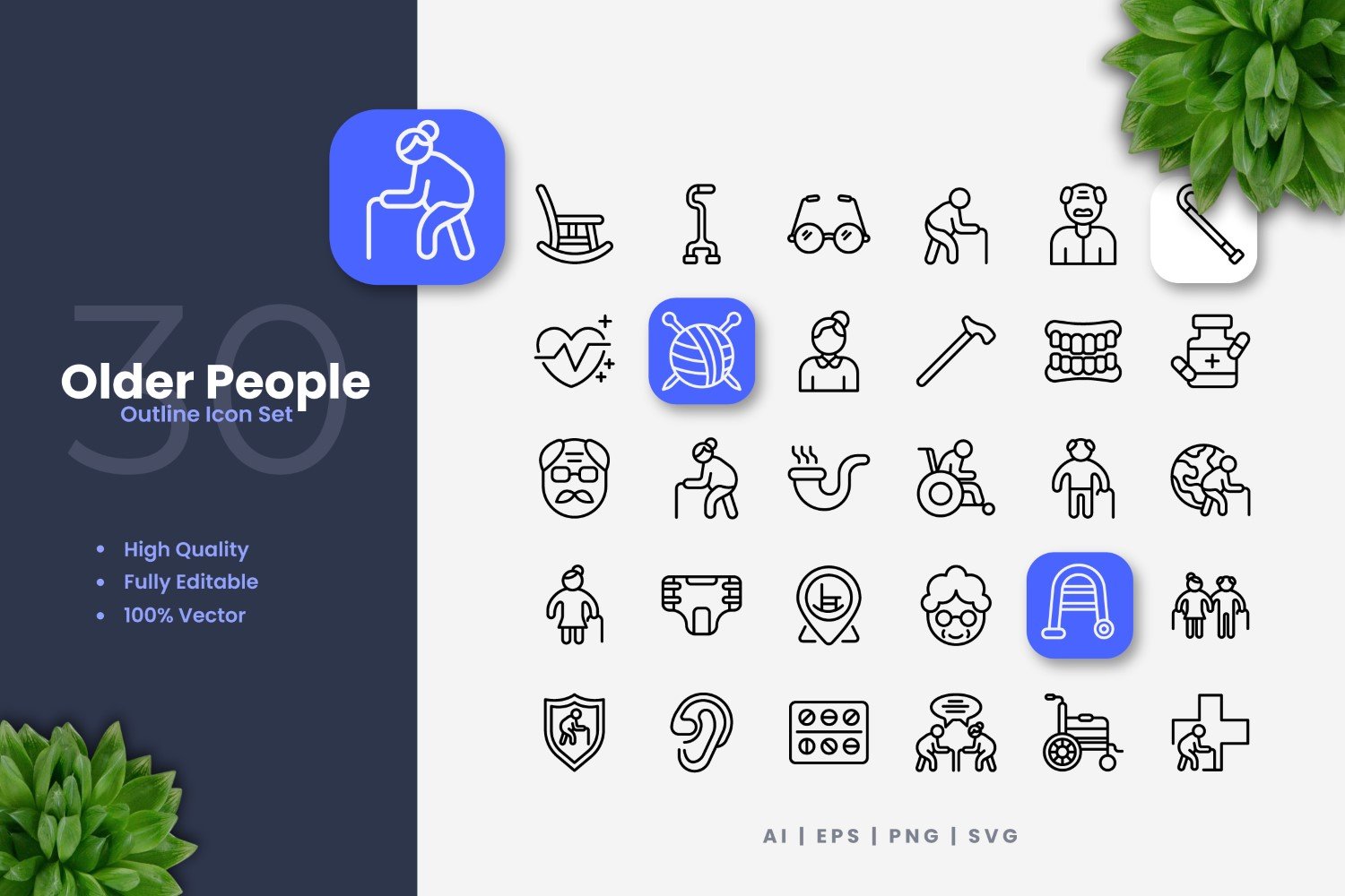 Set of 30 Older People outline icons | Simple and clean design,perfect for websites, mobile apps, books, social media, infographics, flyer, print, banners, posters and many more. To resize, change color, or edit stroke weight ,you can easily edit on vector software like Adobe Illustrator and CorelDRAW.