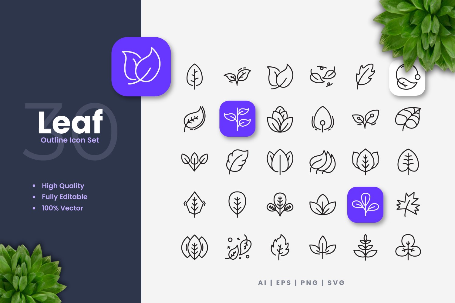 Set of 30 Leaf outline icons | Simple and clean design,perfect for websites, mobile apps, books, social media, infographics, flyer, print, banners, posters and many more. To resize, change color, or edit stroke weight ,you can easily edit on vector software like Adobe Illustrator and CorelDRAW.