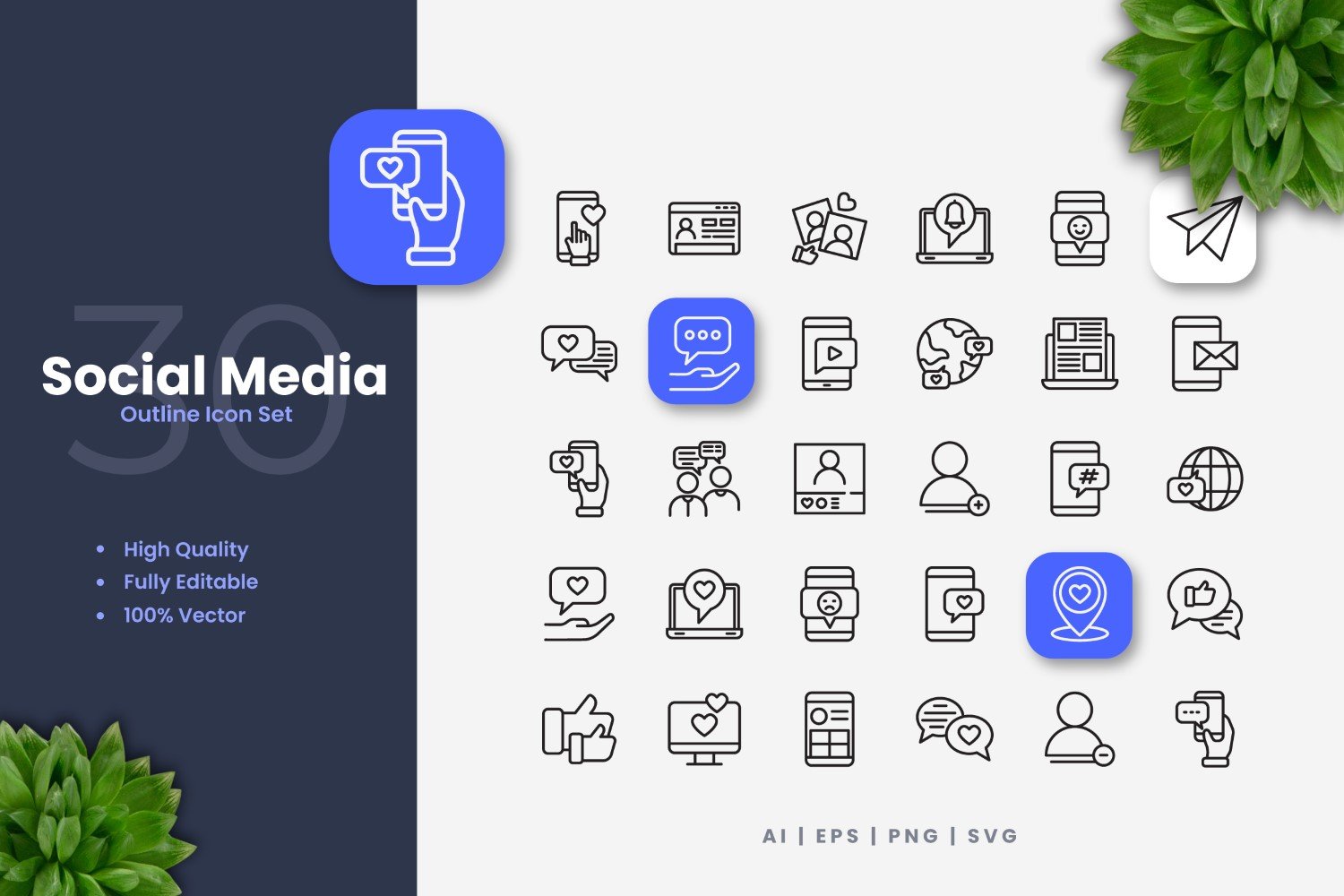 Set of 30 Social Media outline icons | Simple and clean design,perfect for websites, mobile apps, books, social media, infographics, flyer, print, banners, posters and many more. To resize, change color, or edit stroke weight ,you can easily edit on vector software like Adobe Illustrator and CorelDRAW.
