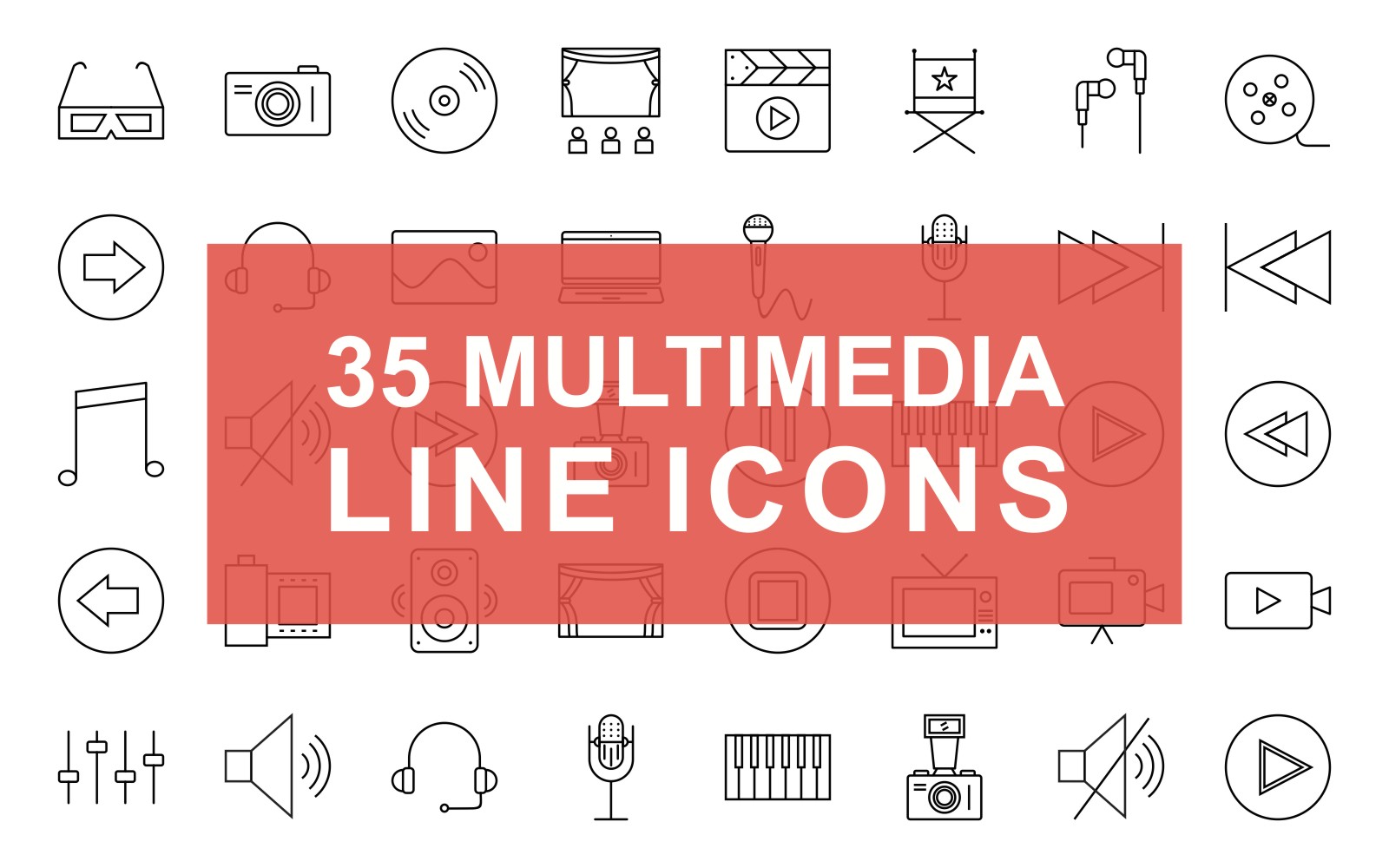 Multimedia Line Black Icon Set is a set of 34 icons in (AI,EPS,JPG,CDR,PNG,& SVG) format, that covers basic user interface needs. Perfect for use in: website mock ups, mobile applications, presentation, promotional materials, info graphics and so on. This set is easy to use for everyone designers and developers.