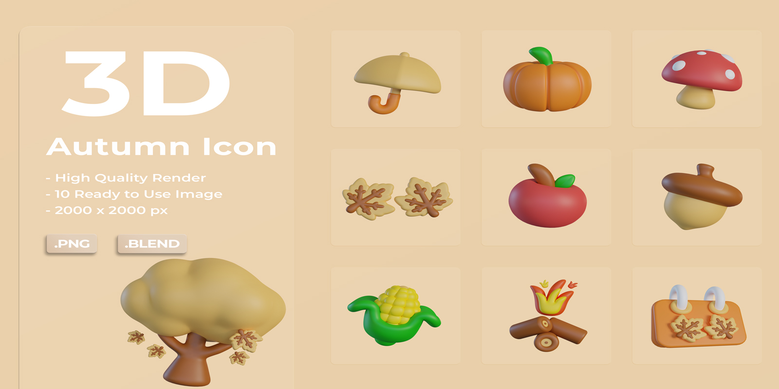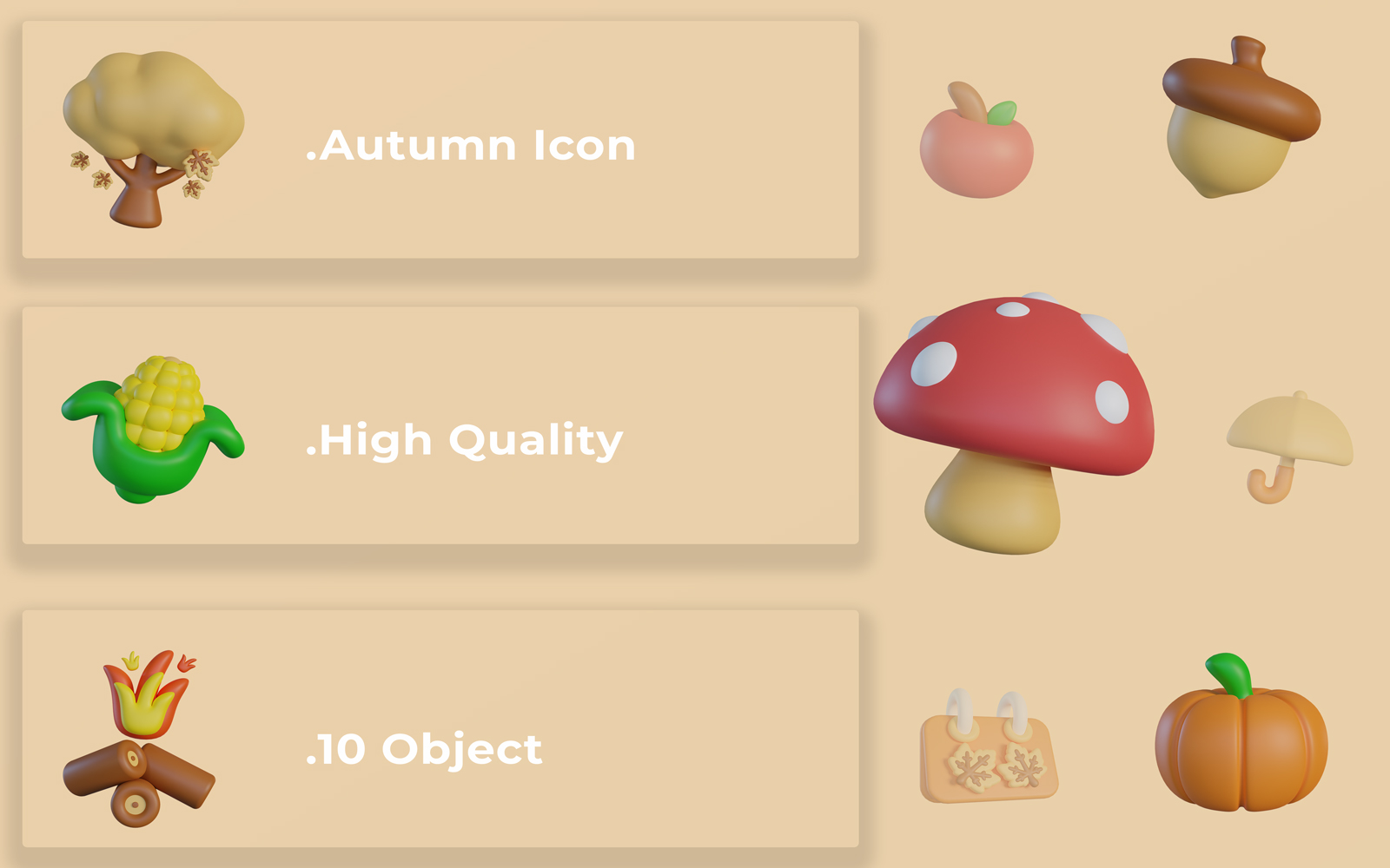 3D Autumn Set Bundle Icon Icon Set