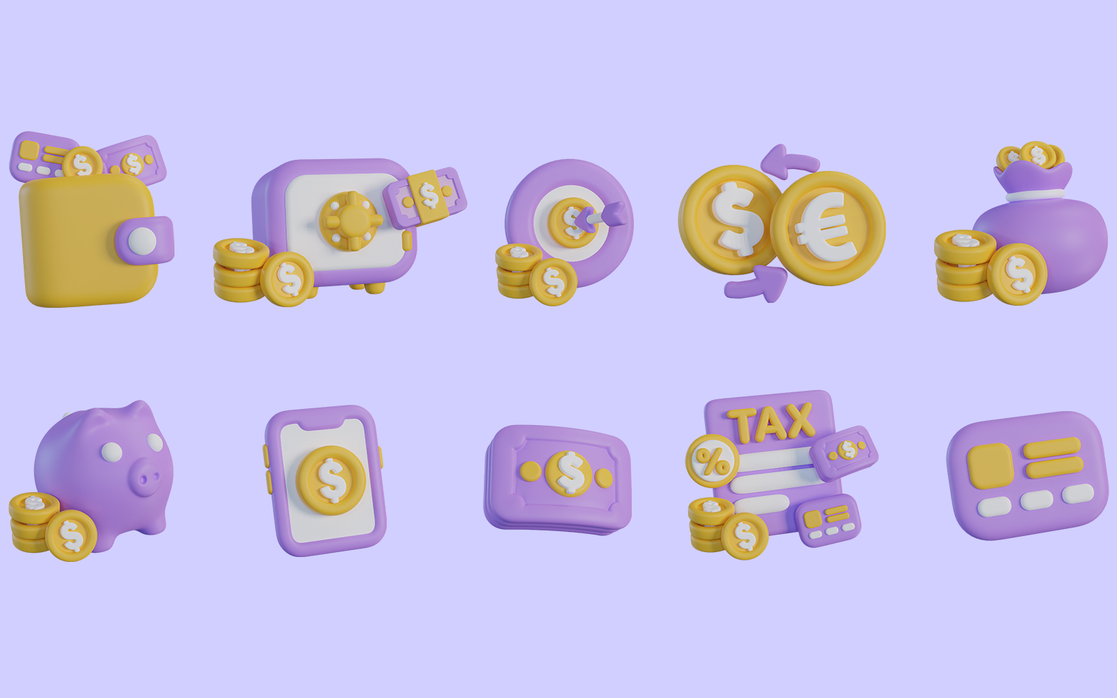 3D Finance Icon Pack – Chubby Money & Banking Illustrations for UI & Apps