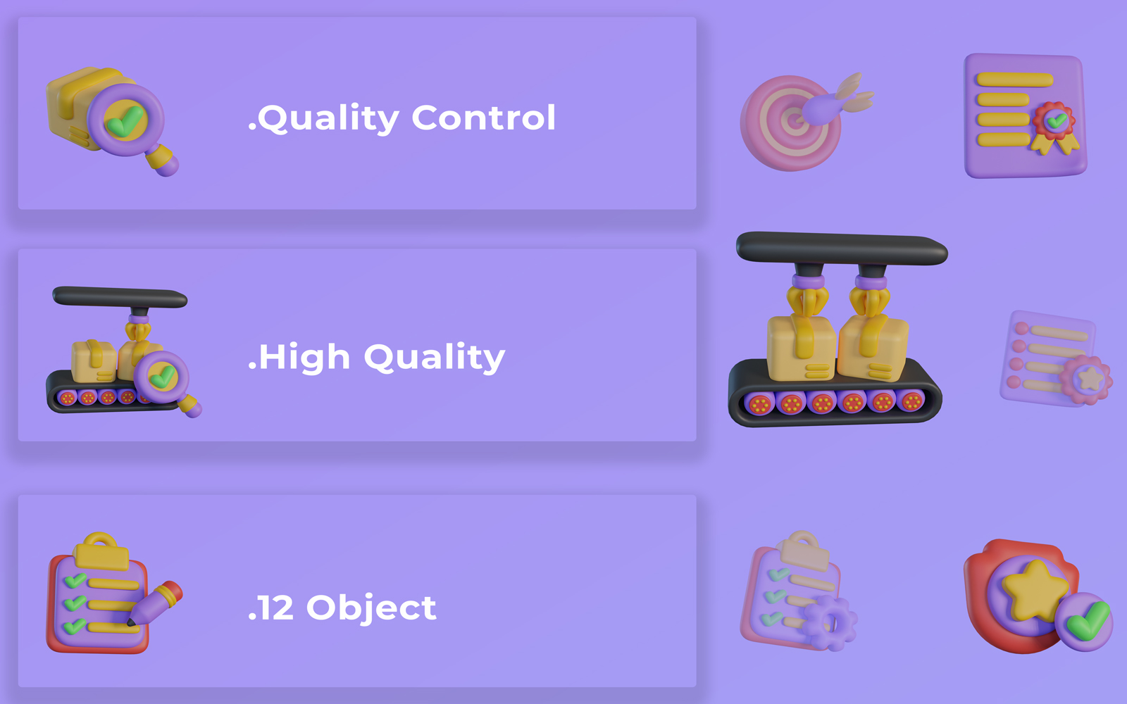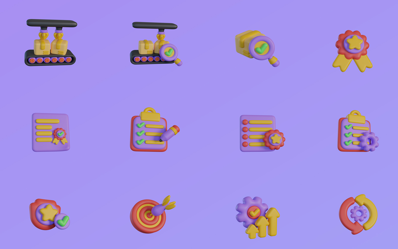 3D Quality Control Icon Set Bundle Design
