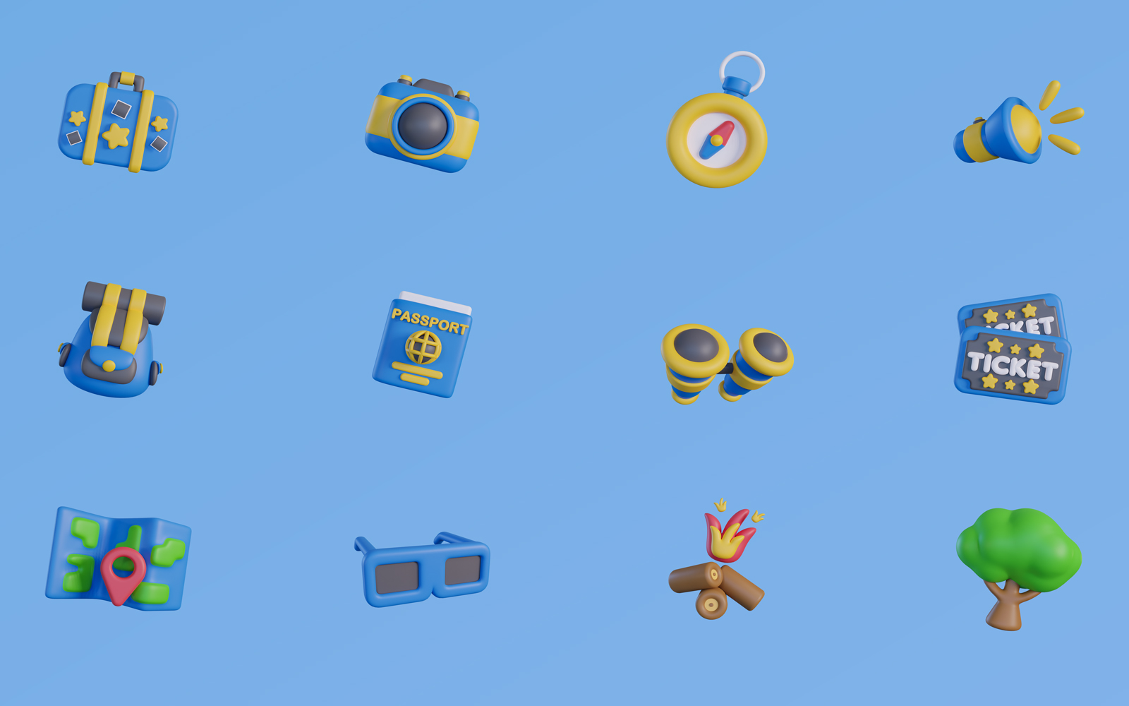 12 ready to use high quality 3D icons for your design. You can easily change colors in Blender software