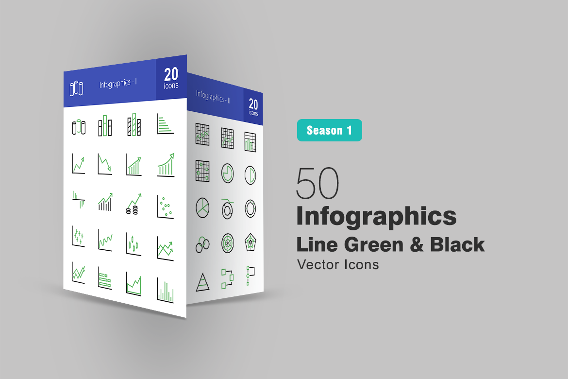 40 Infographics Line Green & Black Icons