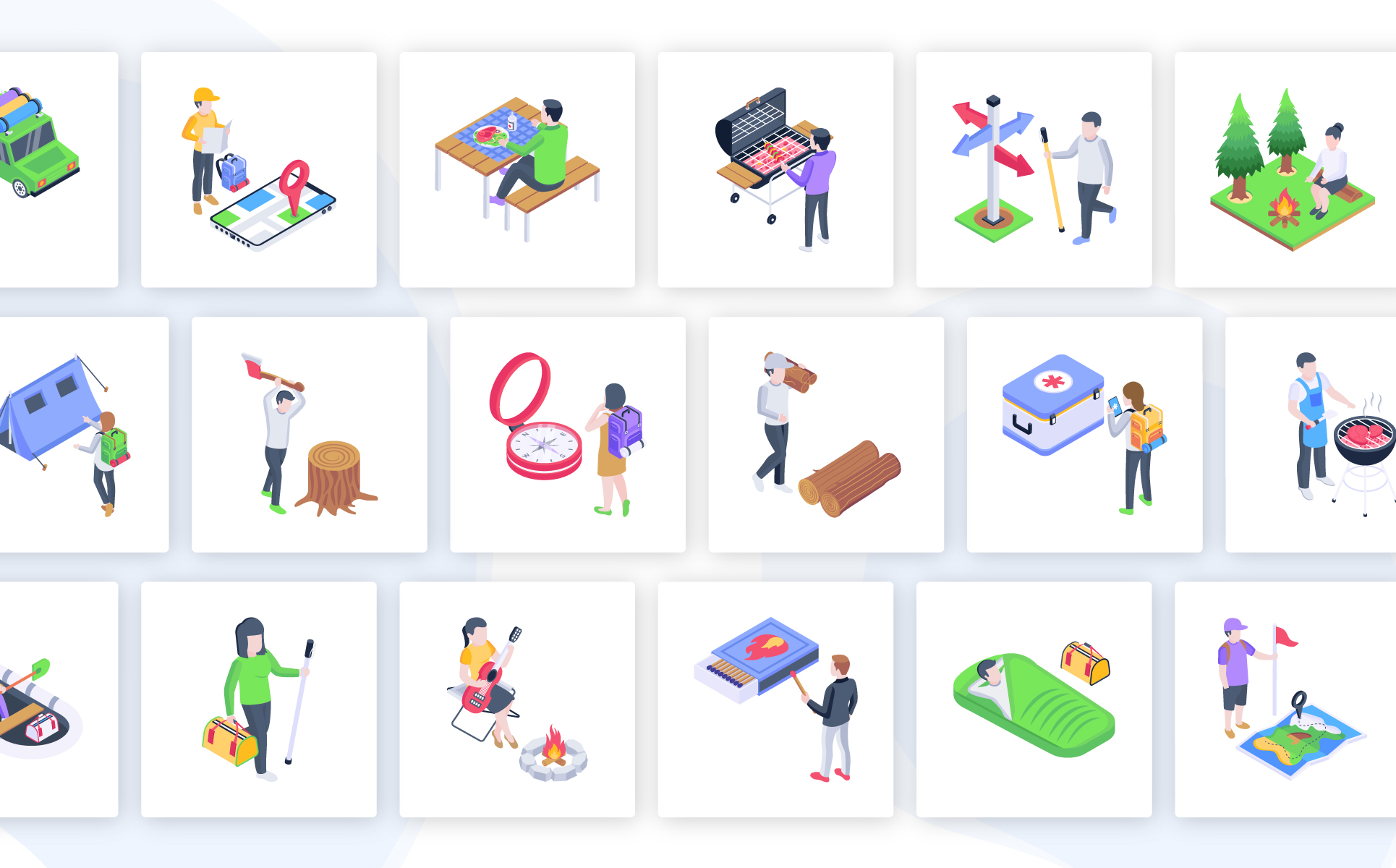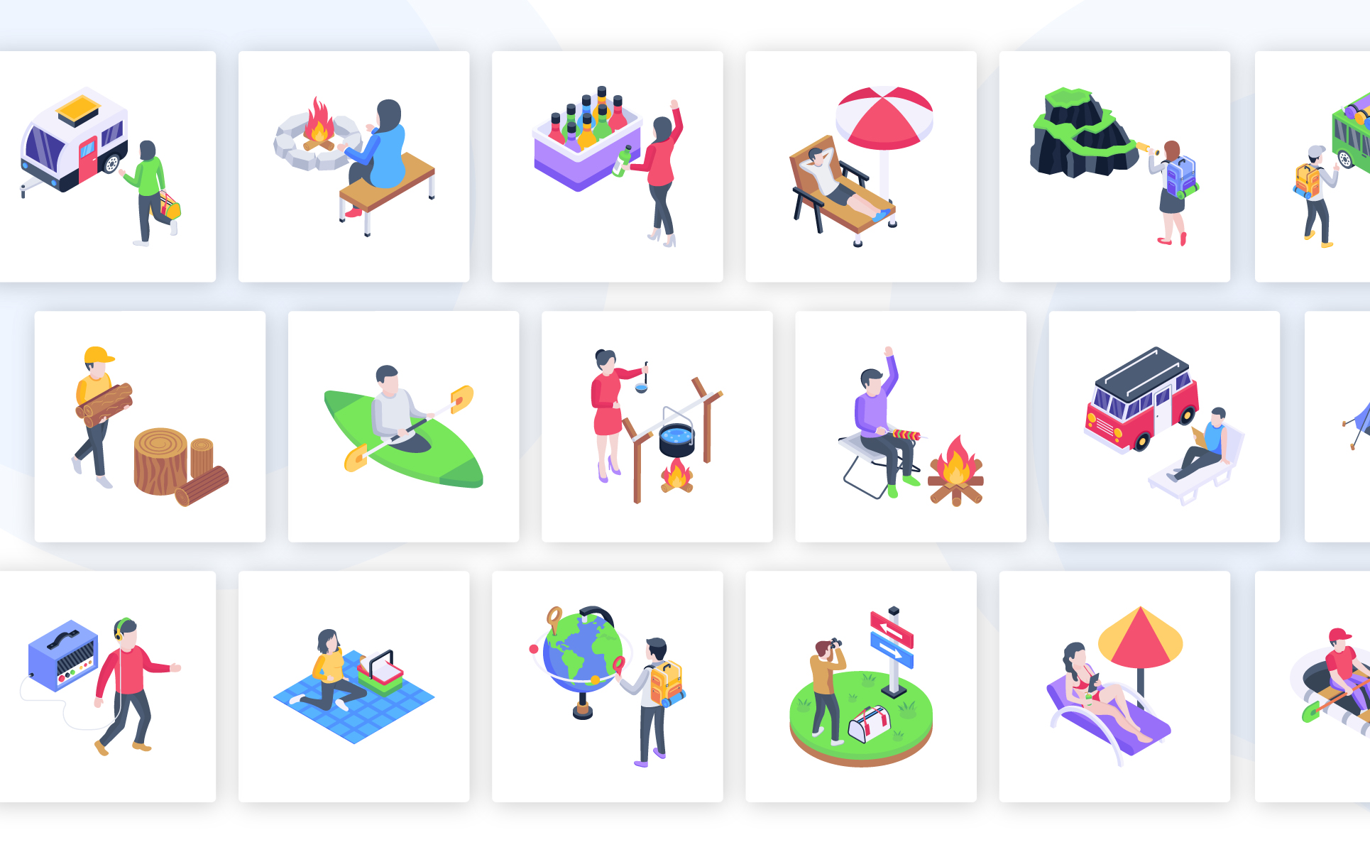 Make your travel and tourism project more appealing by using our cool isometric camping vectors. These vectors are fully customizable and offer easy integration, which will definitely boost your project and catch the attention of the audience.