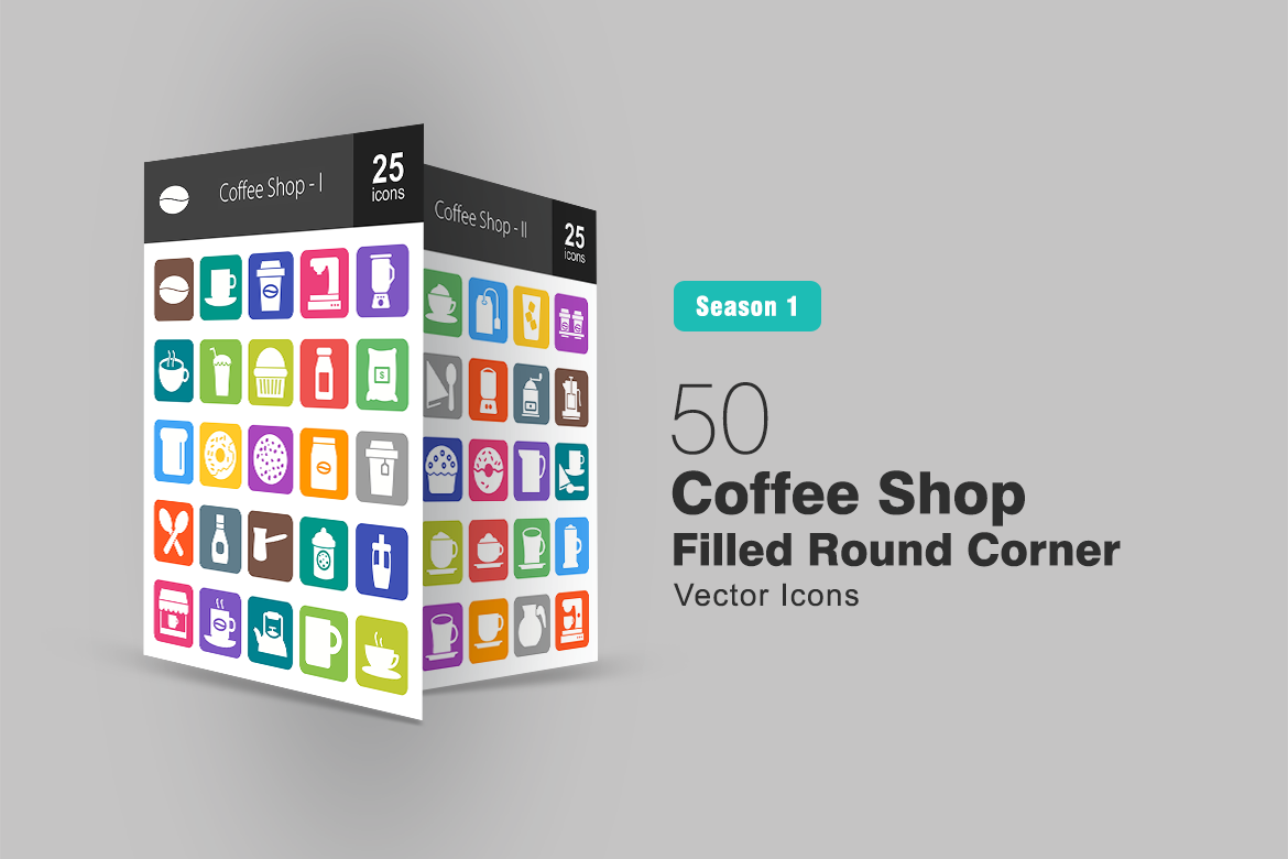 Download this premium 50 Coffee Shop Filled Round Corner Icon Set published on TemplateMonster.