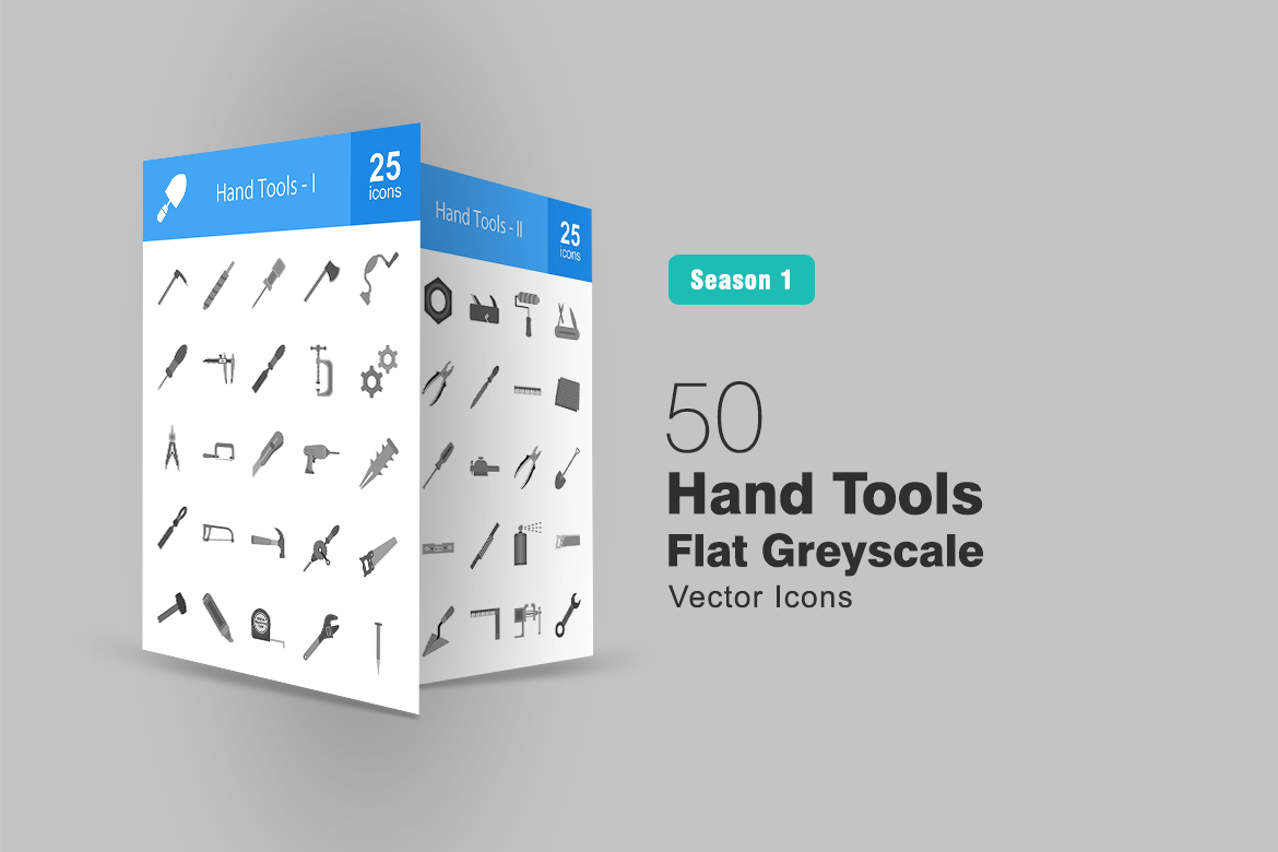 Download this premium 50 Hand Tools Flat Greyscale Icon Set published on TemplateMonster.