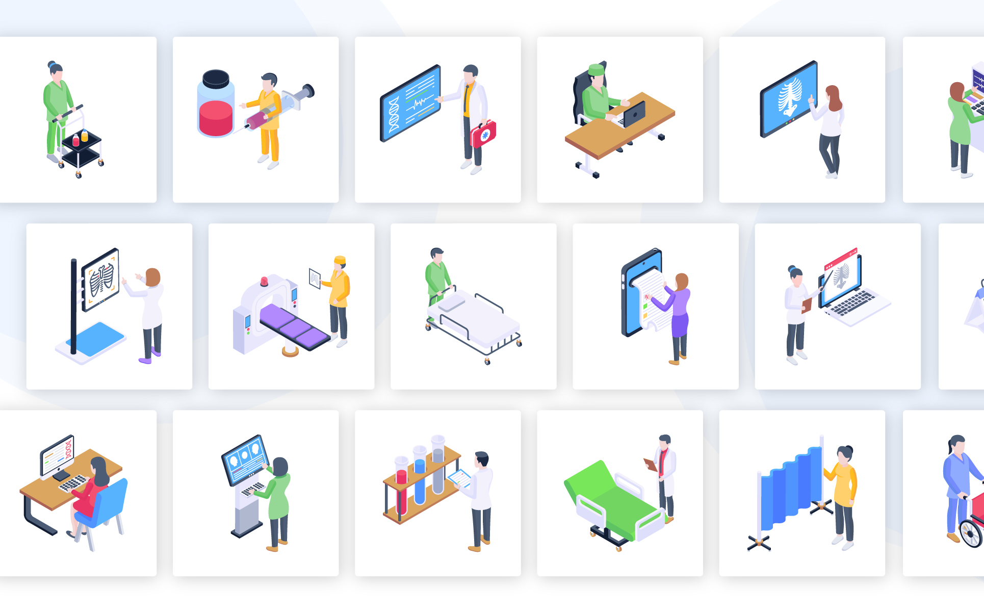 Nursing job is all about taking utmost care of patients and making them comfortable. Our set of pixel perfect isometric vectors is purposefully crafted to portray the professional activities of nurses and fit the requirements of the healthcare niche. Make your healthcare project more appealing with these character-based customizable vectors.