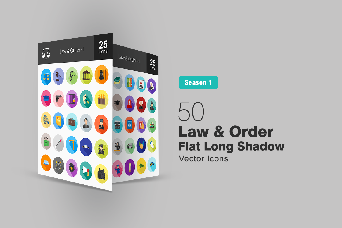 Download this premium 50 Law & Order Flat Long Shadow Icon Set published on TemplateMonster.