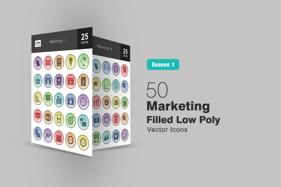 50 Marketing Filled Low Poly Icons