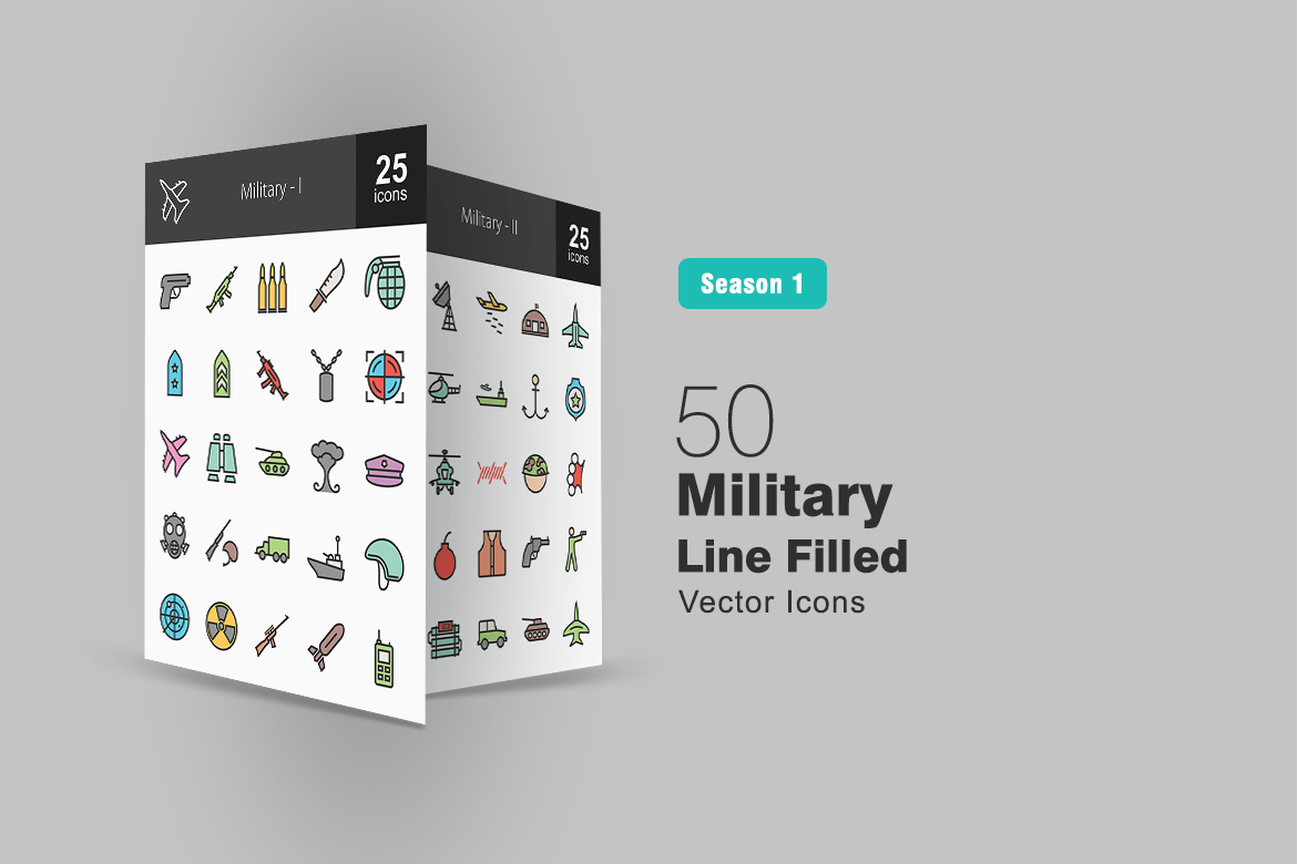 Download this premium 50 Military Filled Line Icon Set published on TemplateMonster.