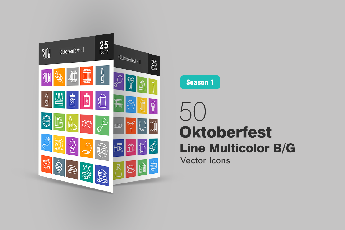 Download this premium 50 Oktoberfest Line Multicolor B/G Icon Set published on TemplateMonster.
