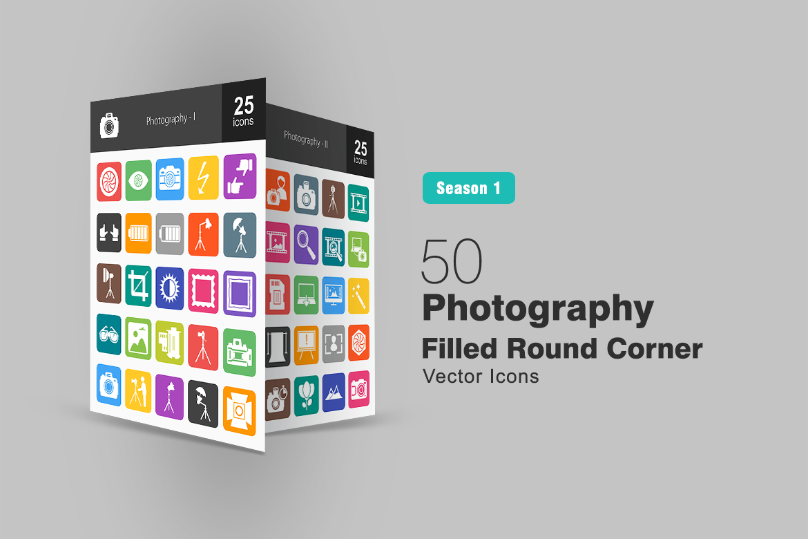 Download this premium 50 Photography Filled Round Corner Icon Set published on TemplateMonster.