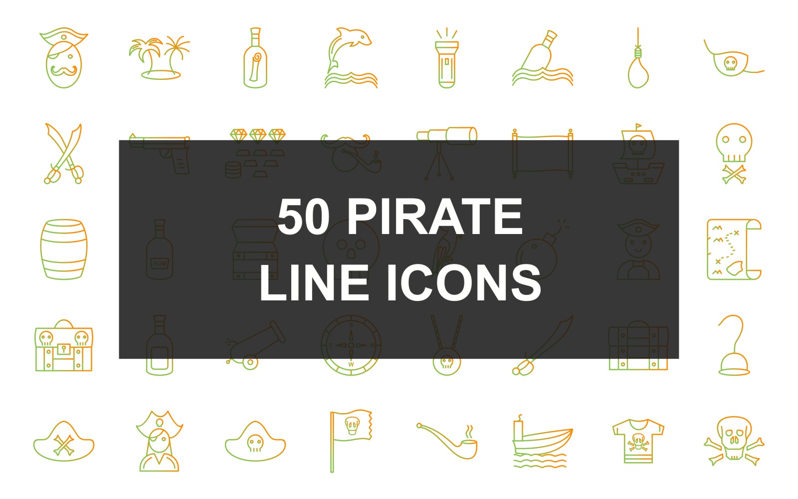 Pirate Line Icon Set is a set of 50 icons in (AI,EPS,JPG,CDR,PNG,& SVG) format, that covers basic user interface needs. Perfect for use in: website mock ups, mobile applications, presentation, promotional materials, info graphics and so on. This set is easy to use for everyone designers and developers.