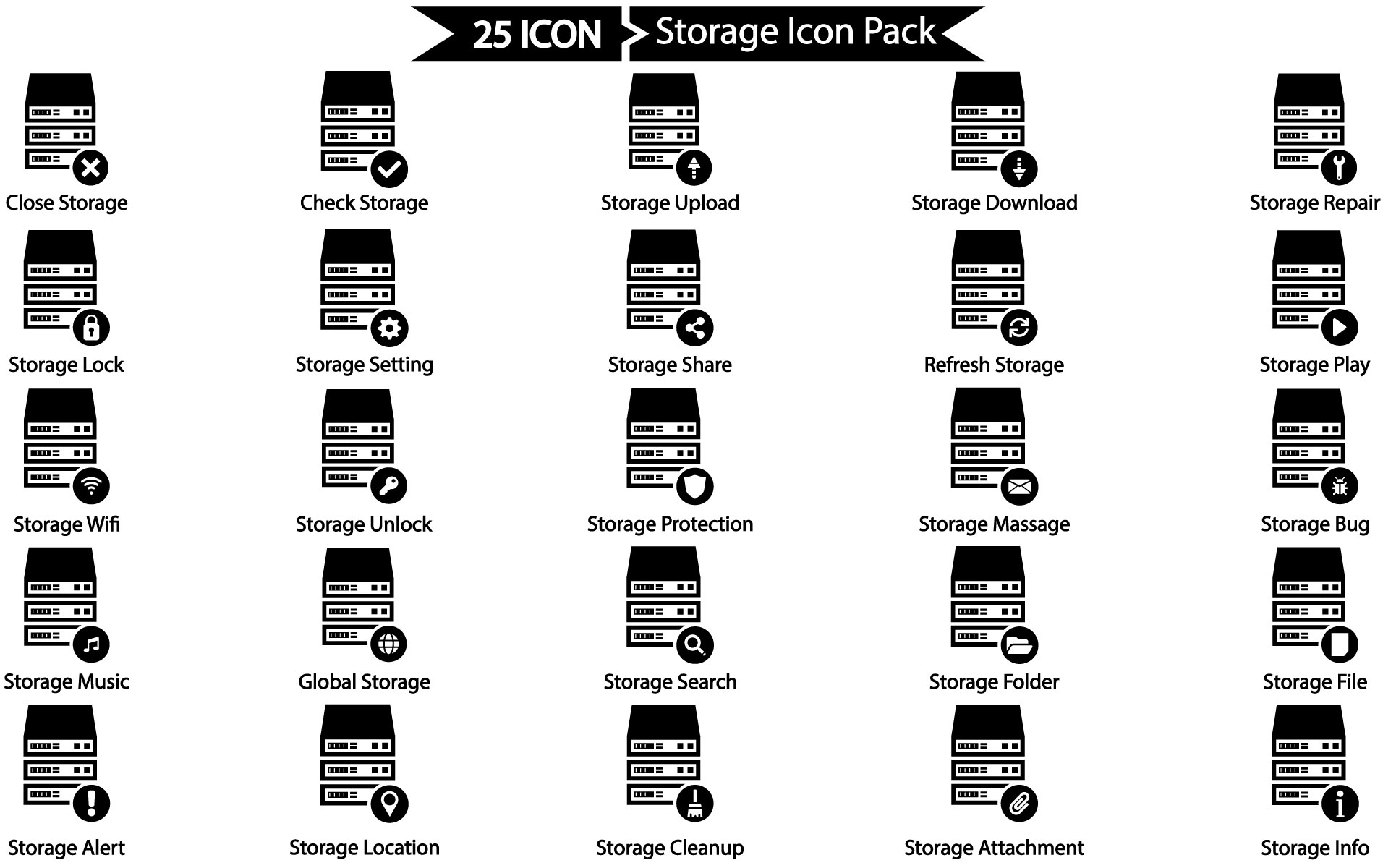 Beautiful, meticulously designed 50 Storage Icon. Perfect for use in designing and developing websites, printed materials, presentations, Promotional Materials, Illustrations, Info graphics or any type of design projects