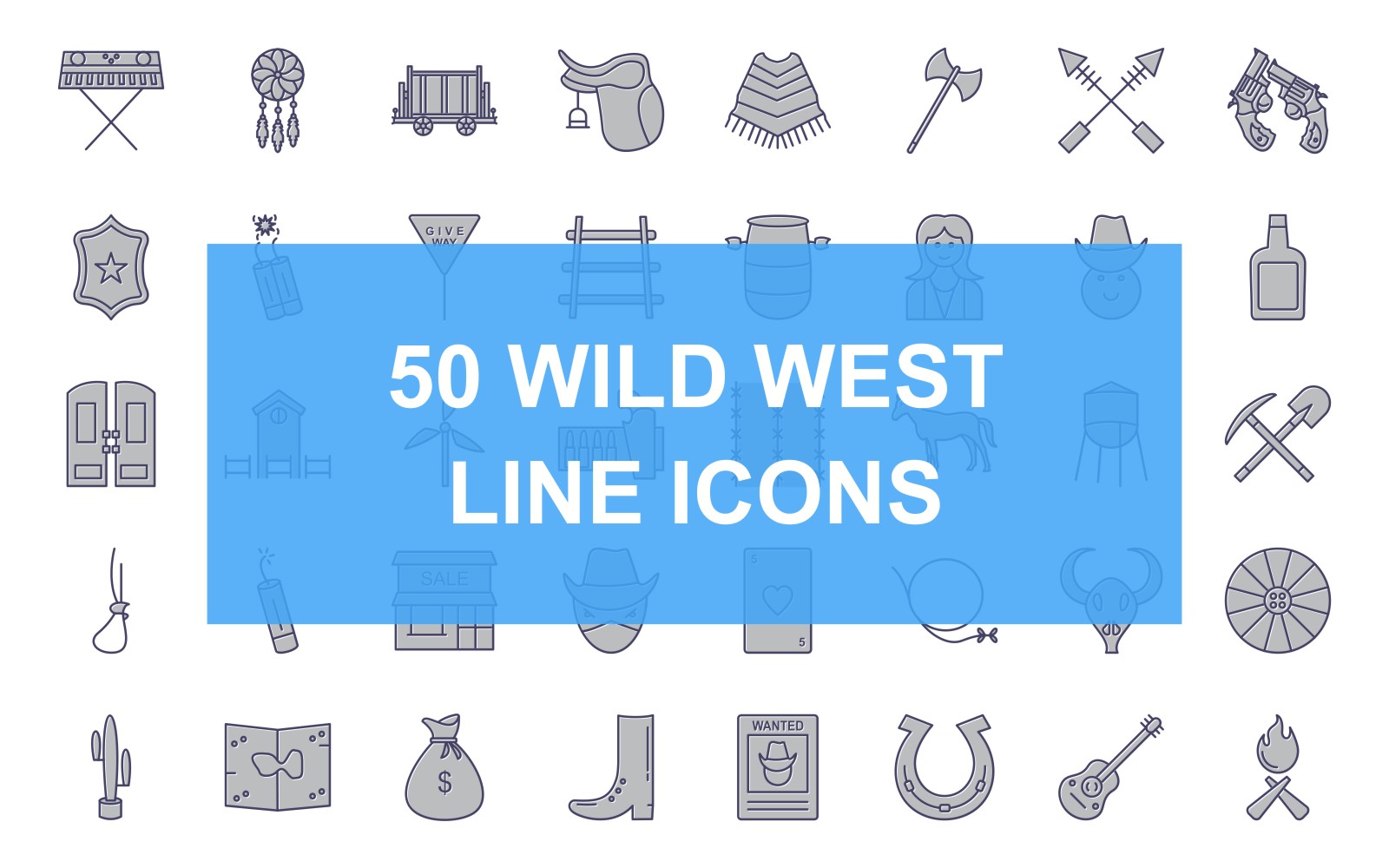 50 Wild West Line Icons