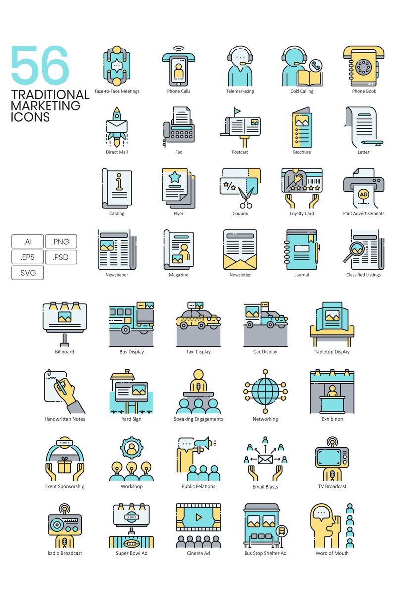 Beautifully-Crafted Traditional Marketing Vector Icon Set.