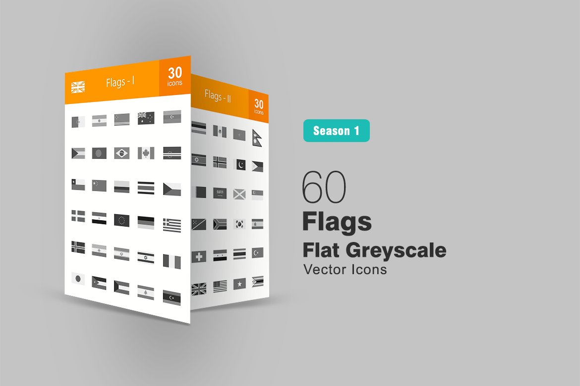 Download this premium 60 Flags Flat Greyscale Icon Set published on TemplateMonster.