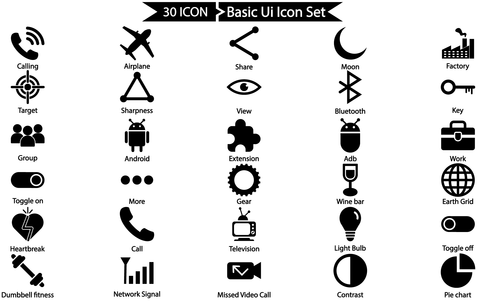 • 2 Versions Included (30*2 Icons) Total: 60 Icons (Blue, Black Colors).