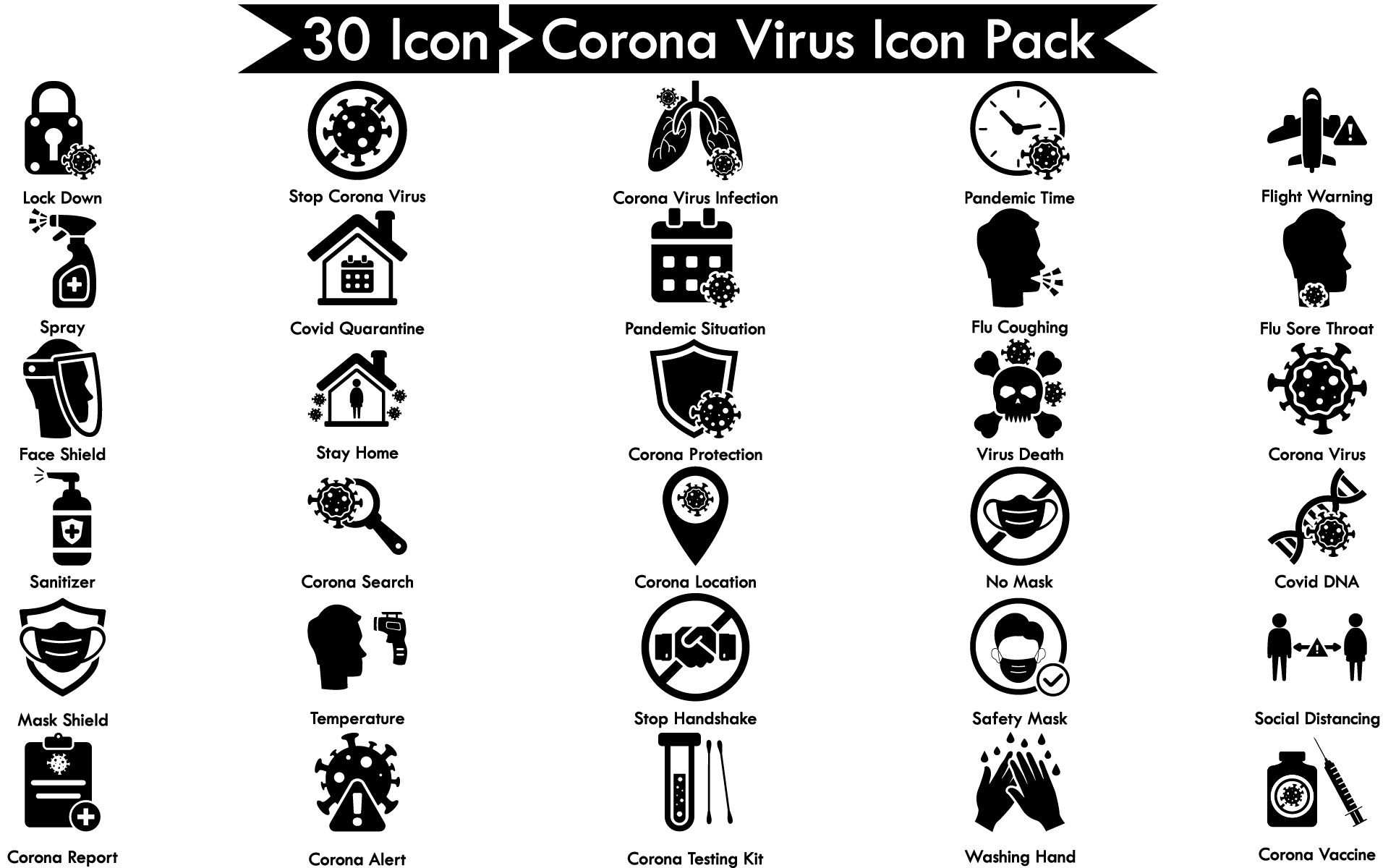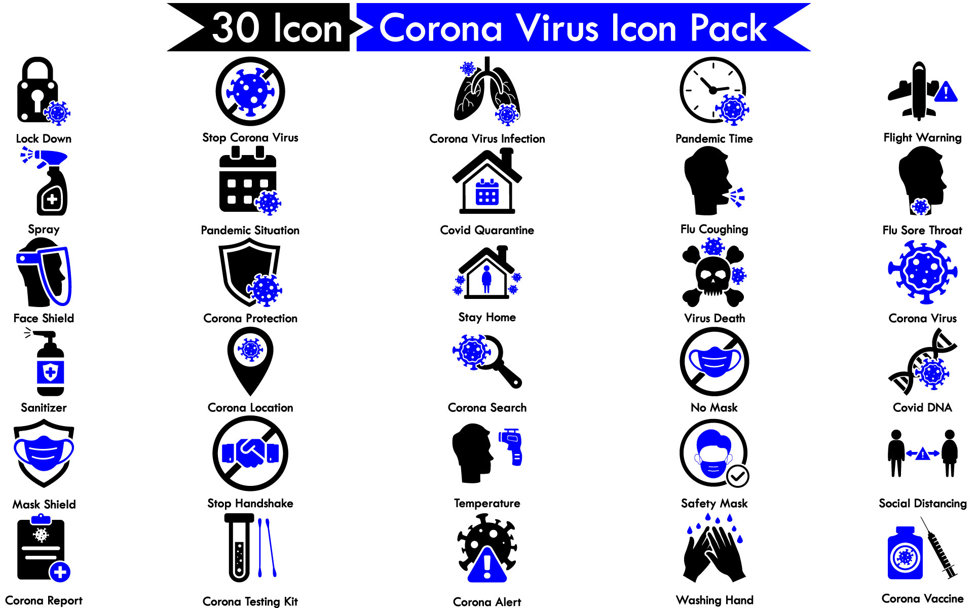 Beautiful, meticulously designed 60 Corona Virus Icon Pack. Perfect for use in designing and developing websites, printed materials, presentations, Promotional Materials, Illustrations, Info graphics or any type of design projects