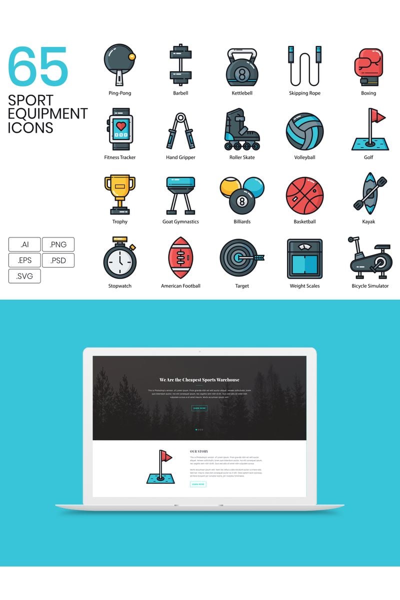 Download this premium 65 Sports Equipment Icons - Groovy Series Set published on TemplateMonster.