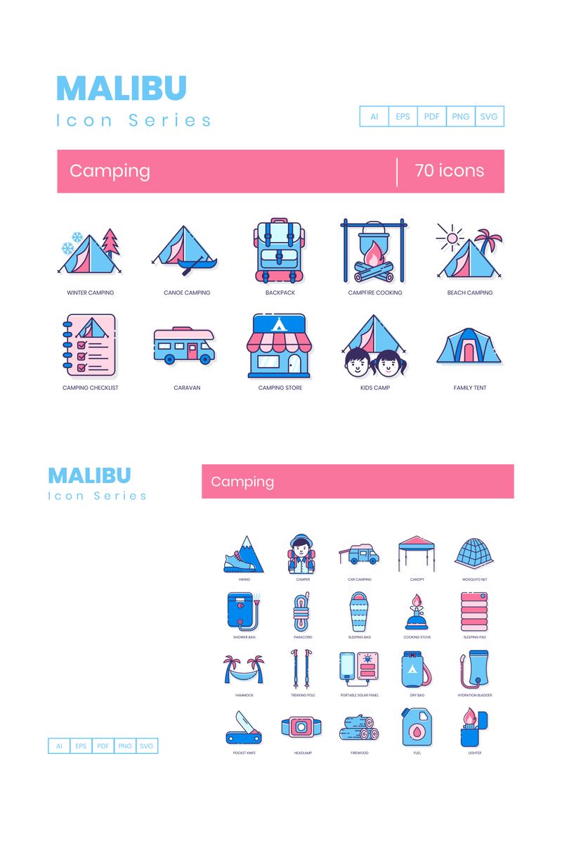 Download this premium 70 Camping Icons - Malibu Series Set published on TemplateMonster.
