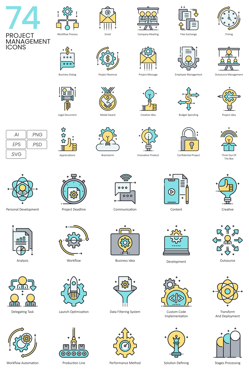 This is what we want to help you with! With these 74 Project Management Icons, we are hoping that we can assist you in managing your projects more effectively and efficiently. We understand that managing something big can be difficult, so visualizing and breaking down the project into smaller chunks can help! You can use 74 of these icons to inspire yourself and others! Use it as a marketing tool, a presentation, or you might find a way to integrate this in your website or app! We hope that these icons can give you a fresh perspective!