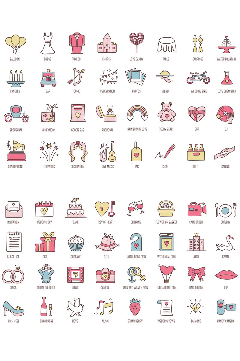Let us help you enjoy this beautiful celebration with these 88 Wedding Icons! With these, you can promote your events, share your wedding projects visually, or even market weddings in general! We have a simple wish, and that is to be able to partake in this joyous occasion with you!