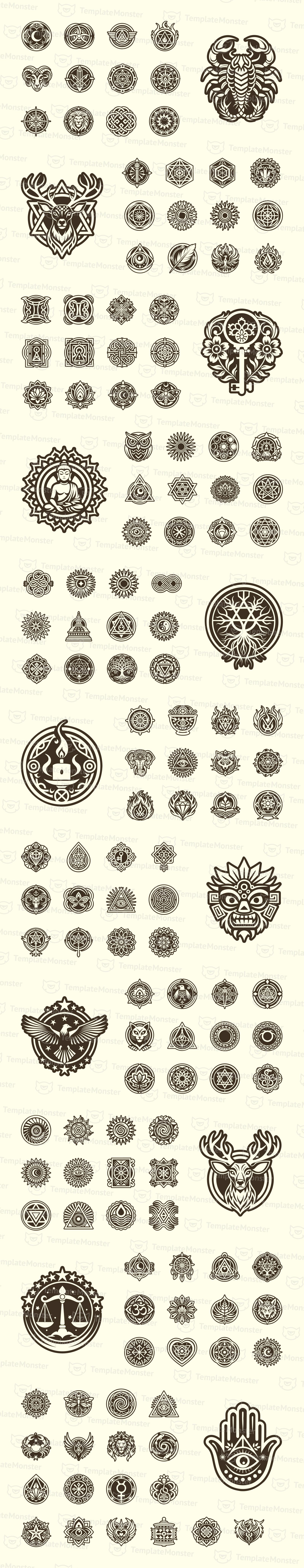 Dive into the mystical realm with our Aesthetic Esoteric Symbols, a stunning collection of alchemical, zodiac, and Buddhist-inspired sigils. Perfect for tattoo artists, graphic designers, and spiritual enthusiasts, this versatile set is ready to adorn your creations. From minimalist aesthetics to intricate details, these symbols embody beauty, mysticism, and creativity, catering to modern and timeless styles alike.