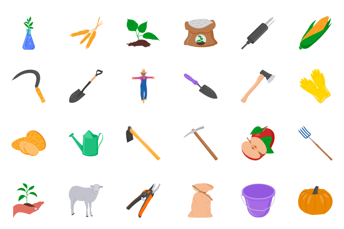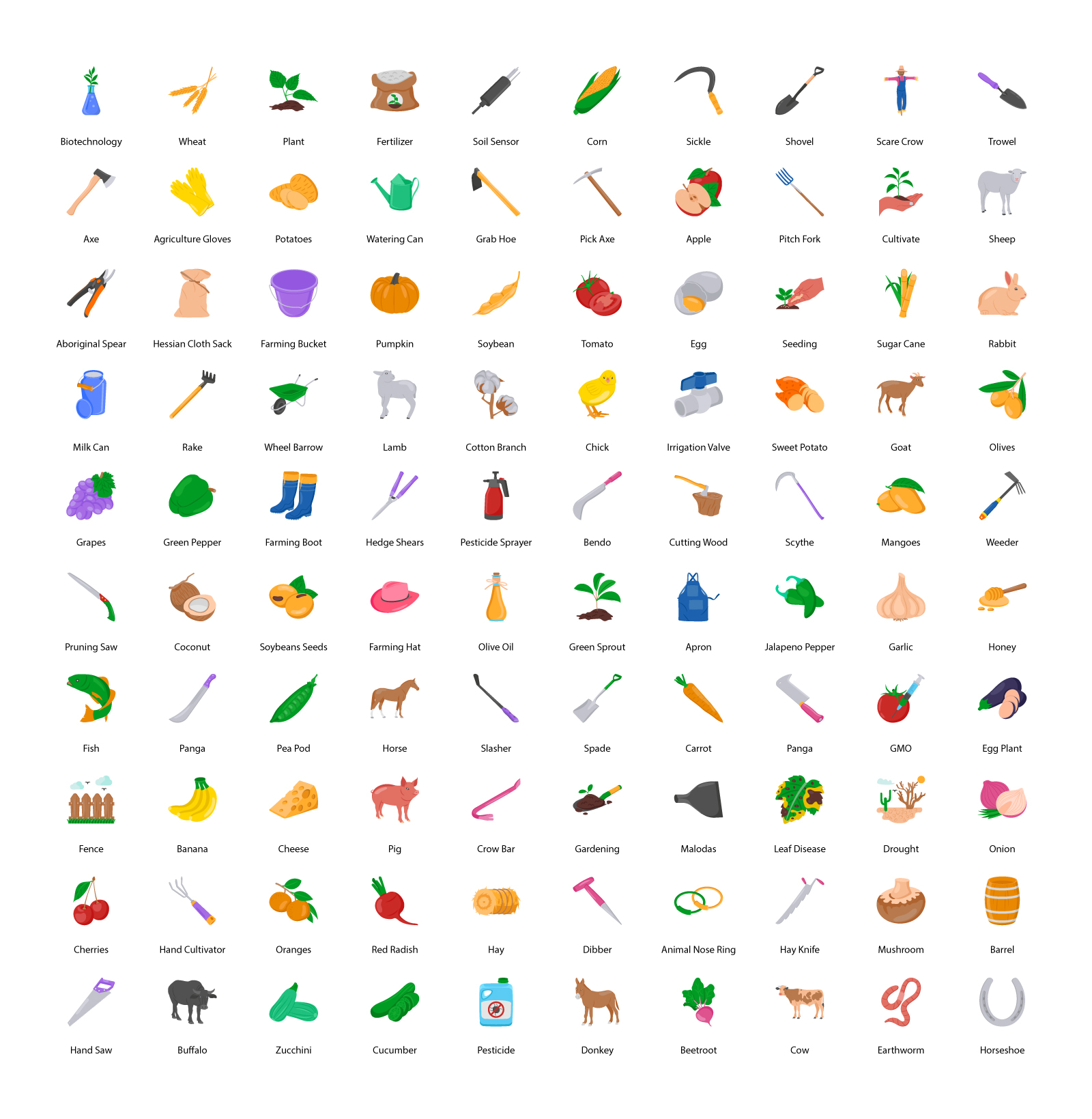 ✔ 100+ Farm & Agriculture Icons – Including Wheat, grains, animals, weather symbols, and more.