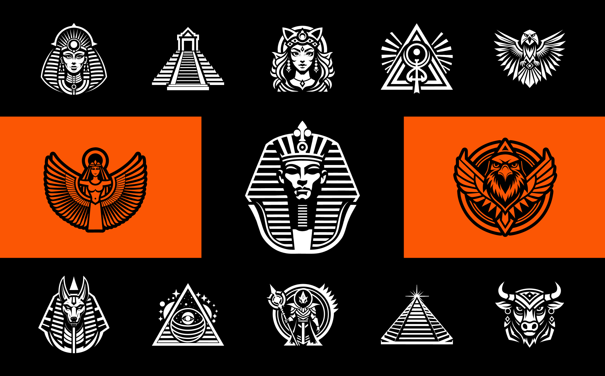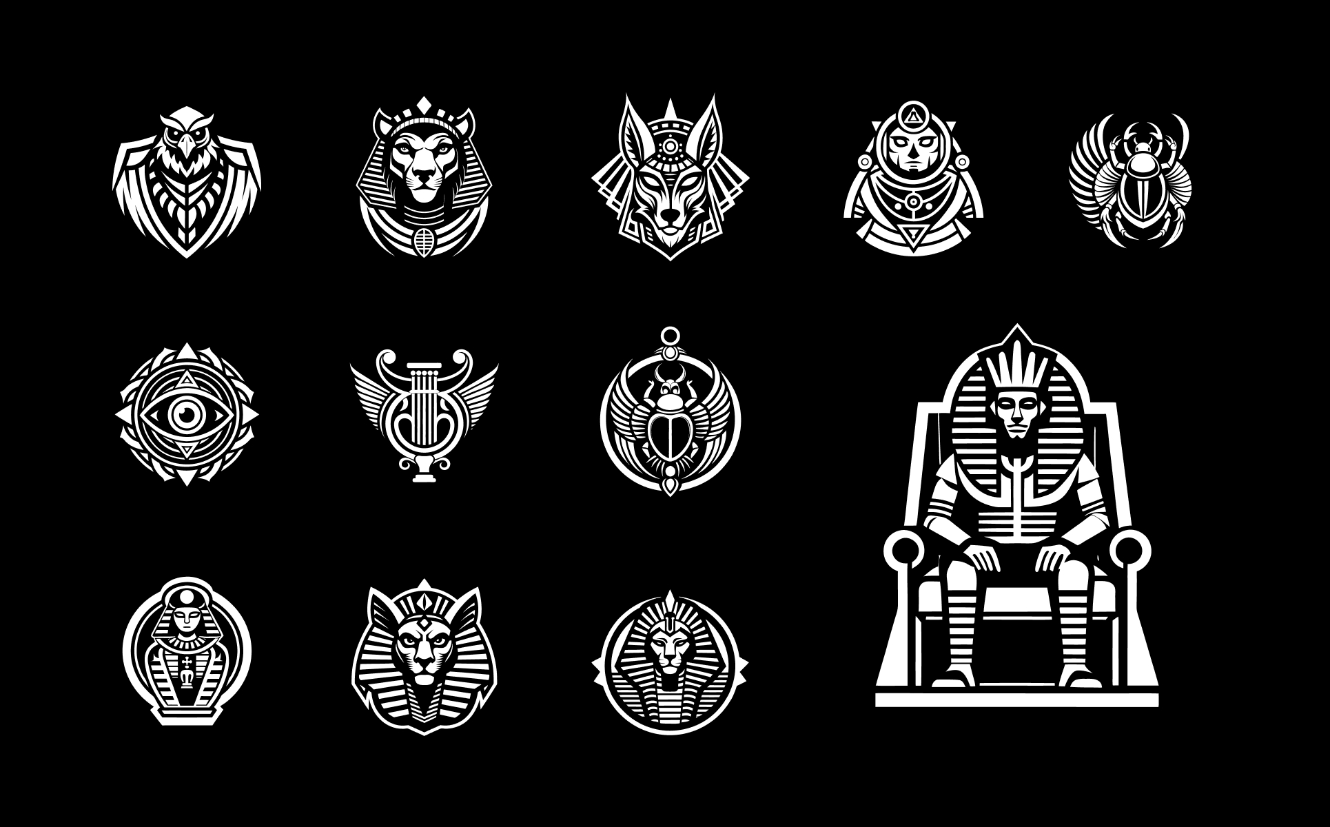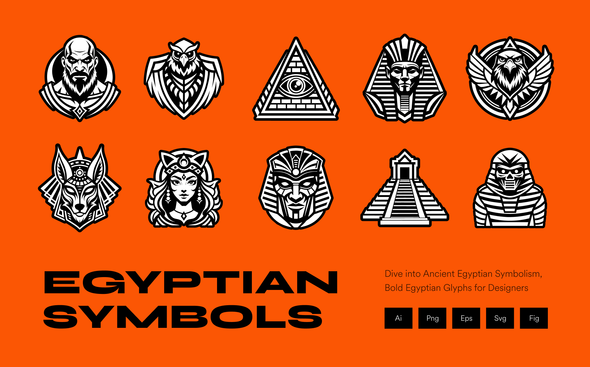 Unleash the mysticism of hieroglyphics with this beautifully crafted set of Ancient Egyptian Symbols. Ideal for graphic designers, tattoo artists, and history enthusiasts, these symbols come in a variety of high-quality formats, ensuring ease of use across all design platforms. Whether you're designing logos, creating print materials, or adding a unique touch to your digital artwork, this collection of timeless symbols will elevate your projects with an authentic, historical flair.