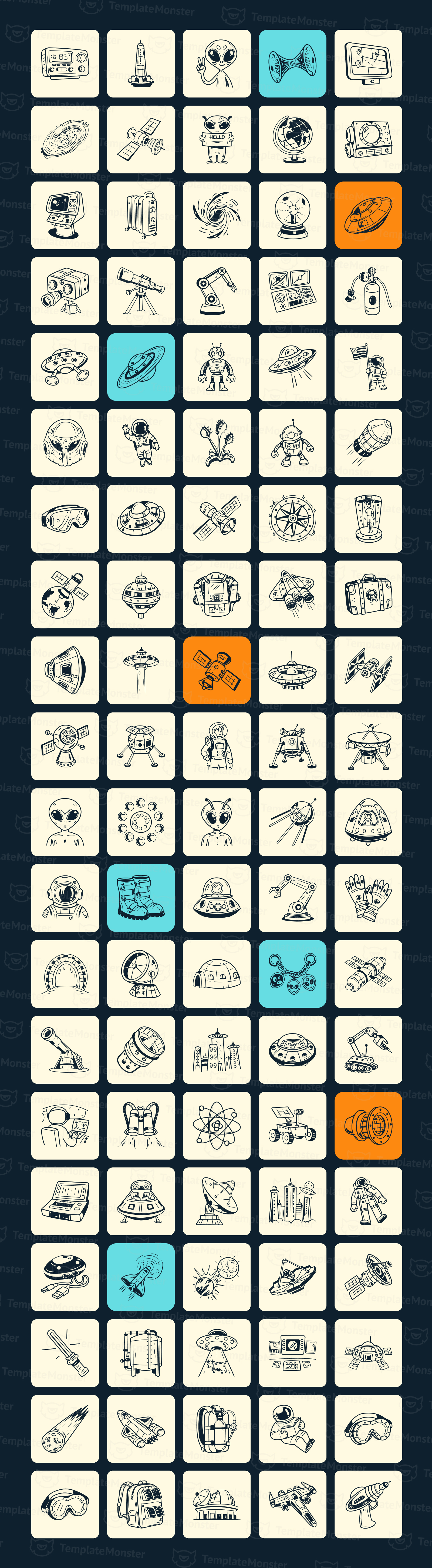 Astronaut and Space Doodles Set Icon Set