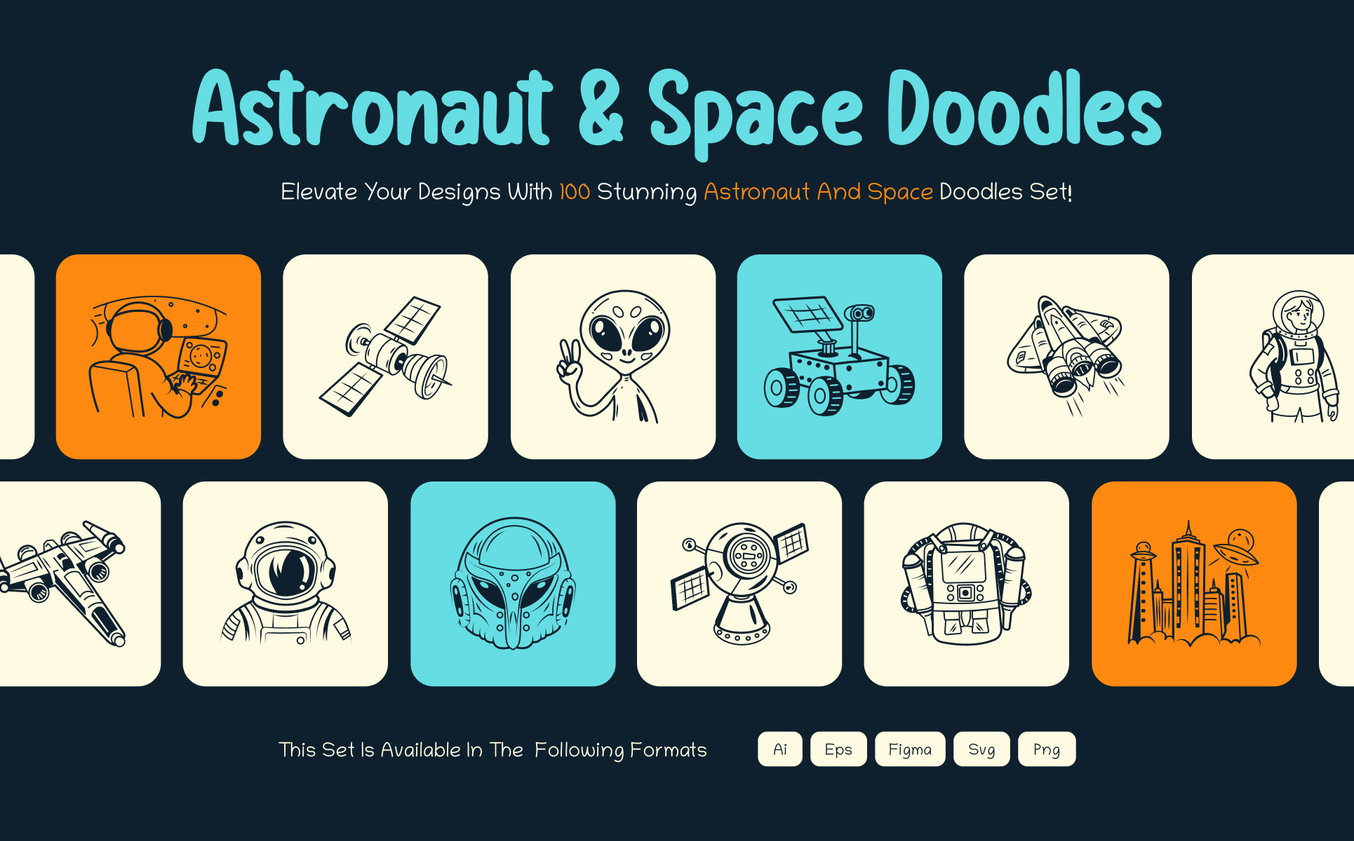 Elevate your projects to stellar heights with Astronaut and Space Doodles Set. This collection includes fun and detailed icons of astronauts, rockets, planets, and cosmic elements, perfect for adding a space theme to any project. Whether you’re designing for web, print, or digital applications, these files are versatile and easy to use.