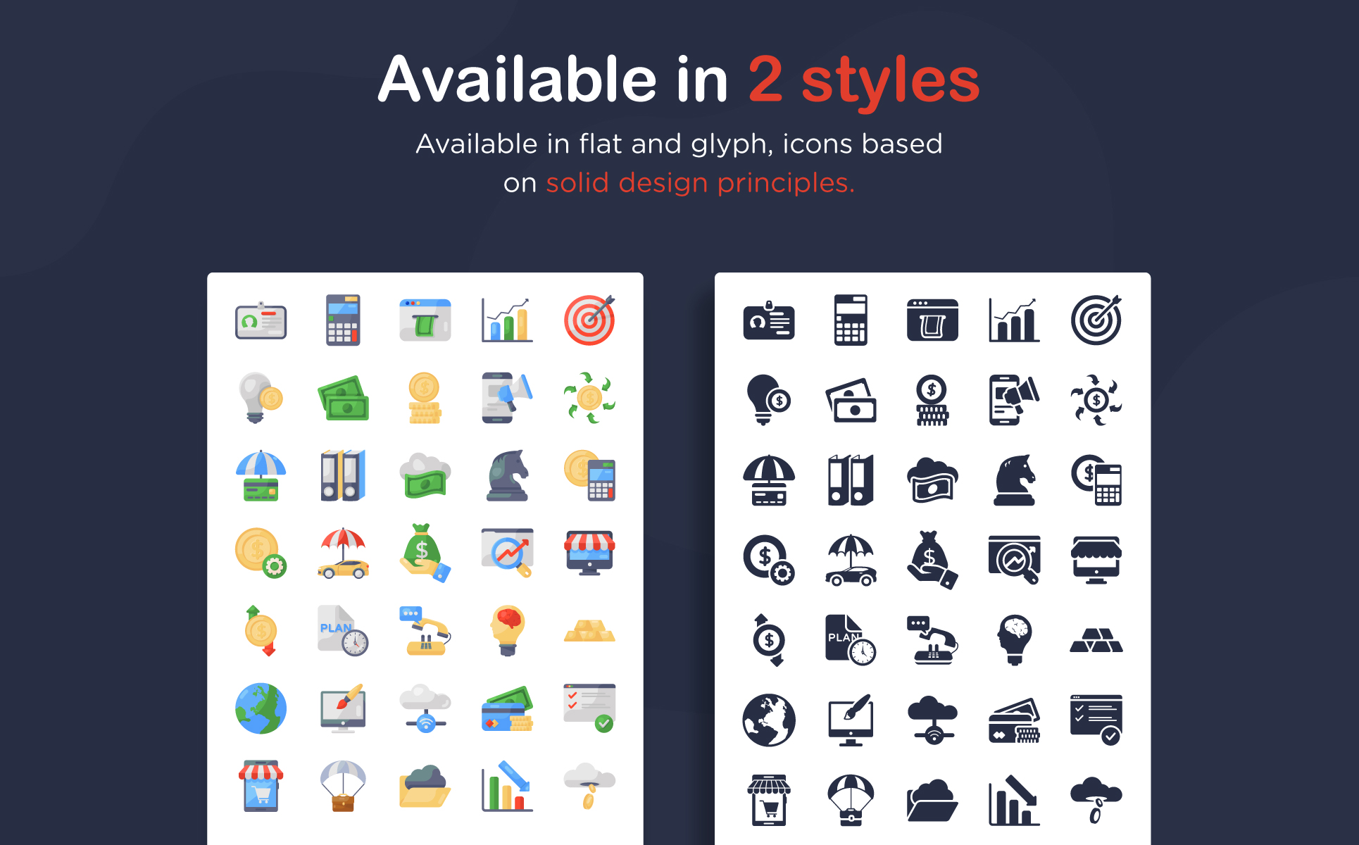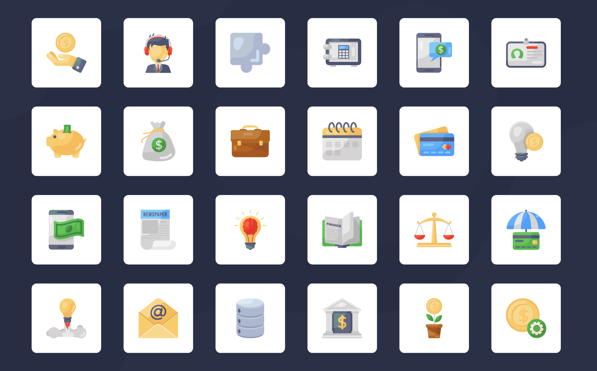 This pack exposes the banking and finance icons in trendy flat style to make your design project more attractive. The set incorporates money, commerce, and other aspects related to financing. Get these editable icons which are extremely useful in associated projects.