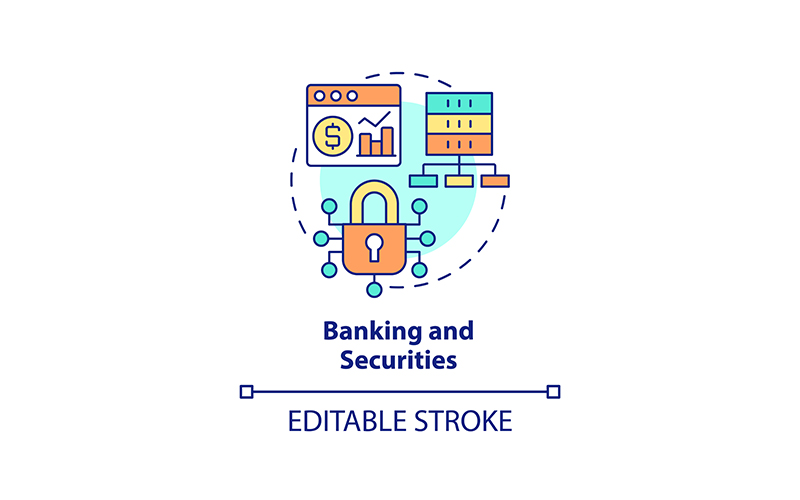 Banking and securities concept icon. Big data application abstract idea thin line illustration. Reducing financial risks. Isolated outline drawing. Editable stroke. Arial, Myriad Pro-Bold fonts used.