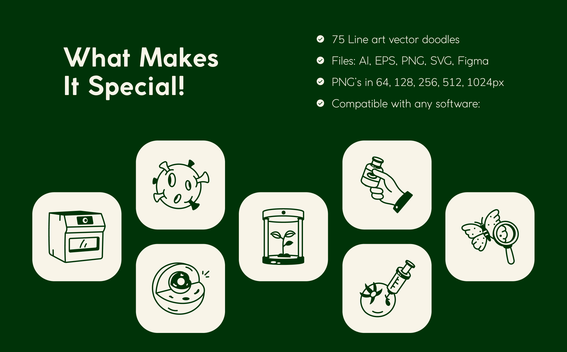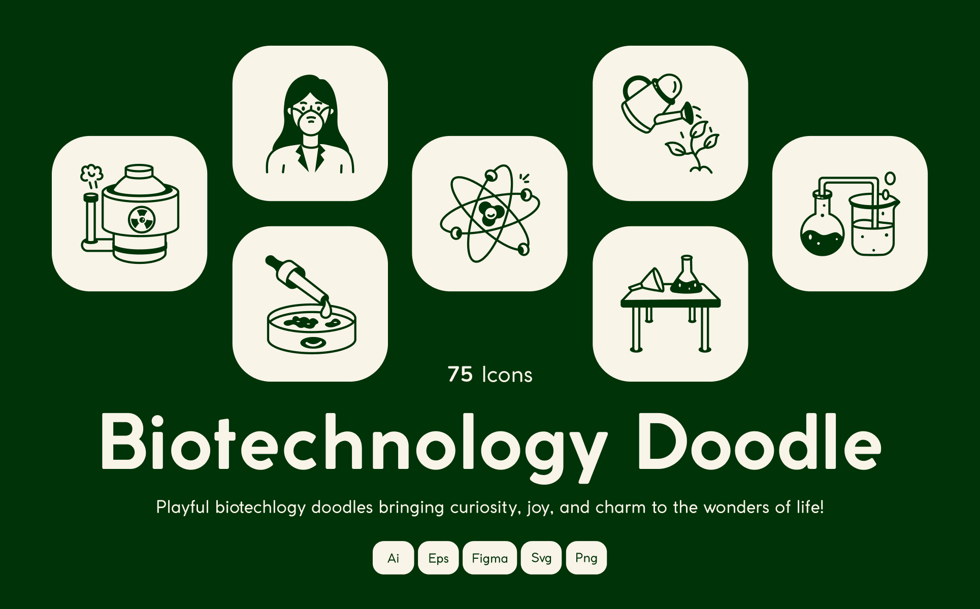 Bring your science ideas to life with this Biotechnology Doodle Icon Set! Designed in a fun and creative doodle style, these icons are perfect for lab presentations, research posters, websites, apps, educational materials, and biotech startups. They’re ready to drop into any project for instant visual impact. Whether you’re illustrating complex research or adding a playful twist to scientific content, this set makes biotechnology accessible and engaging.