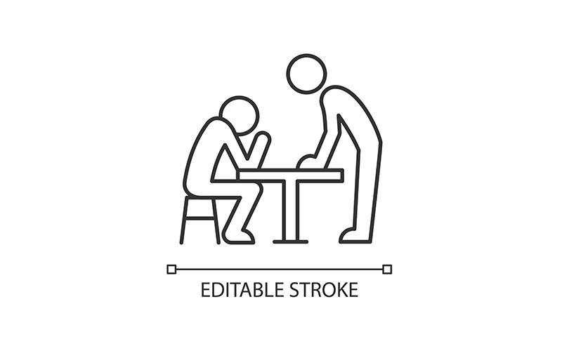 Body language linear icon. Nonverbal communication. Physical behavior. Wordless signals. Thin line customizable illustration. Contour symbol. Vector isolated outline drawing. Editable stroke/