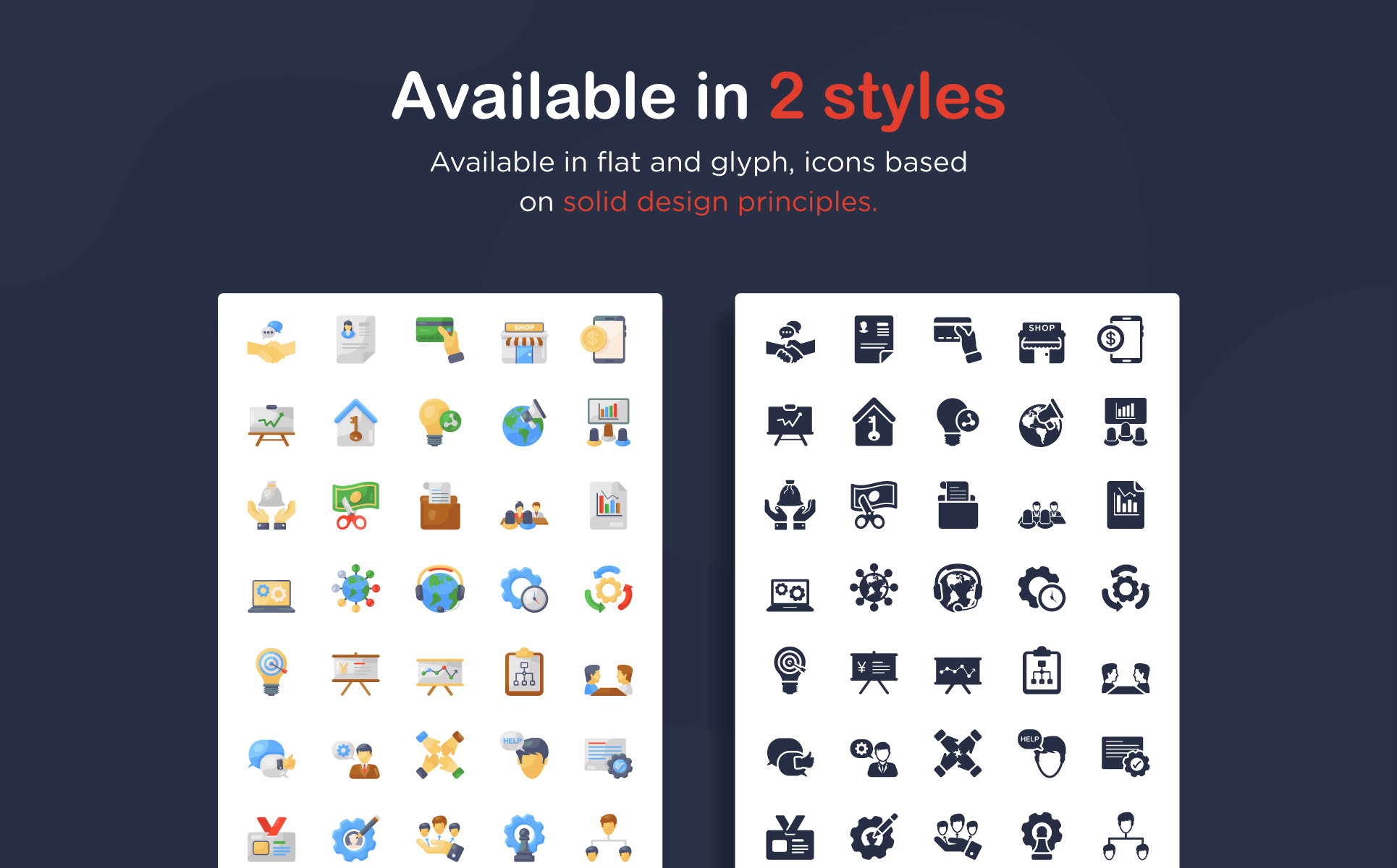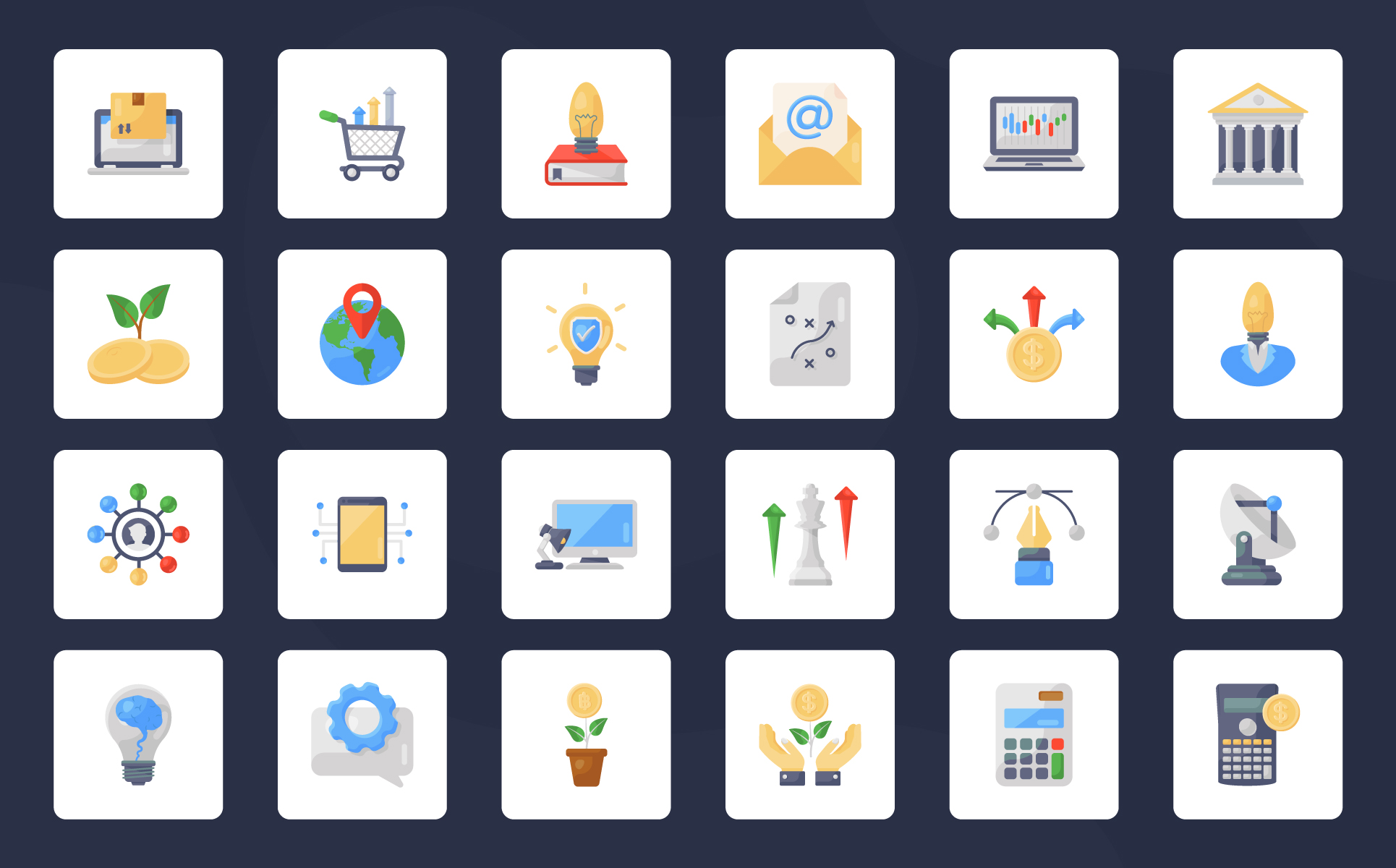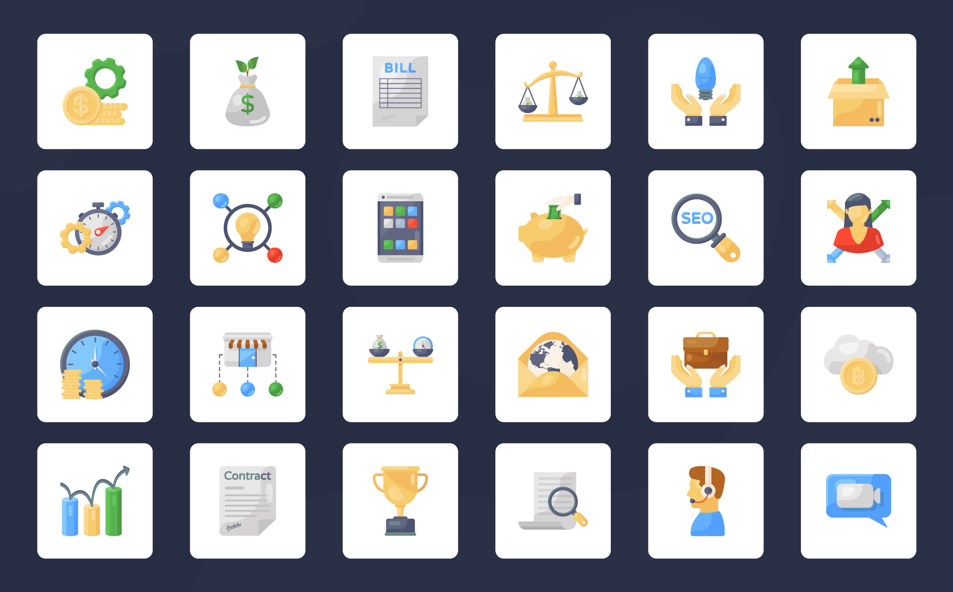 Grab this business management flat icons pack and make your design projects even more visually captivating. The flatty icons style in this pack feature various business concepts, you can build many awesome projects using this set. So, this set is a must have..