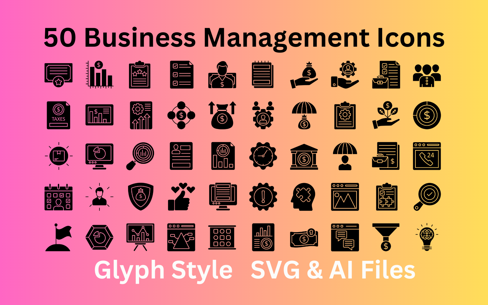 Business Management Icon Set 50 Glyph Icons - SVG And AI Files