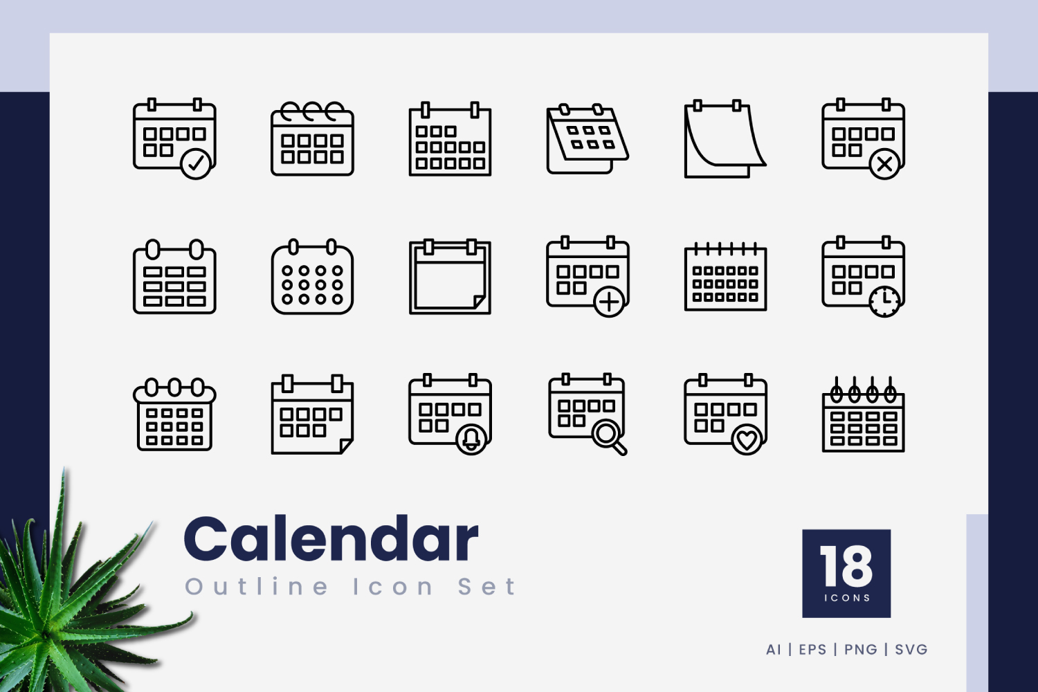 Calendar Outline Icon Set
