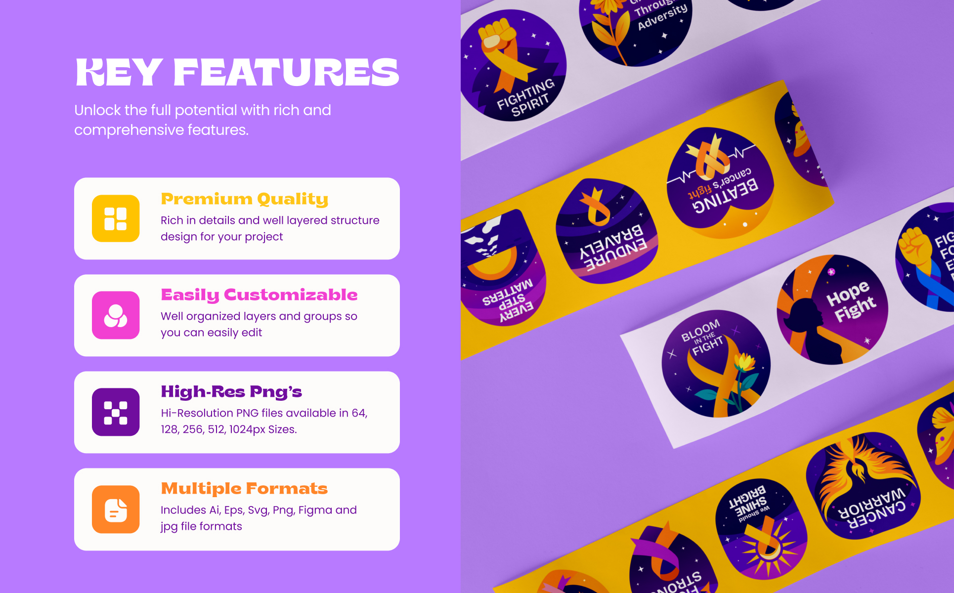 Raise awareness, inspire hope, and show solidarity with our Cancer Awareness Stickers. Designed to support and empower, these stickers are perfect for survivors, advocates, and loved ones looking to make a difference. Use them in fundraising events, on personal items, or as gifts to remind others of the power of support. Available in various formats and sizes, these stickers offer a versatile way to spread awareness and make an impact.