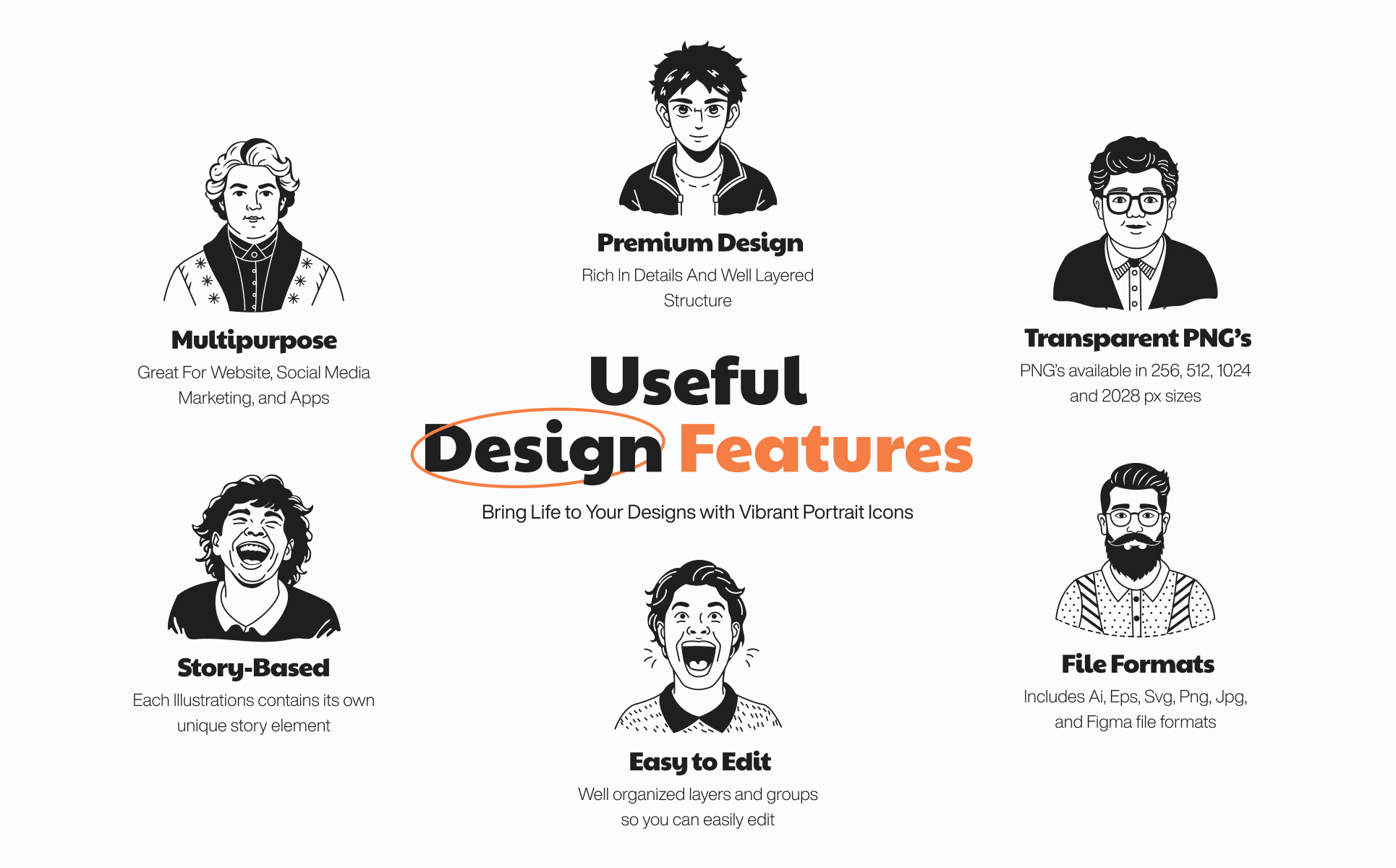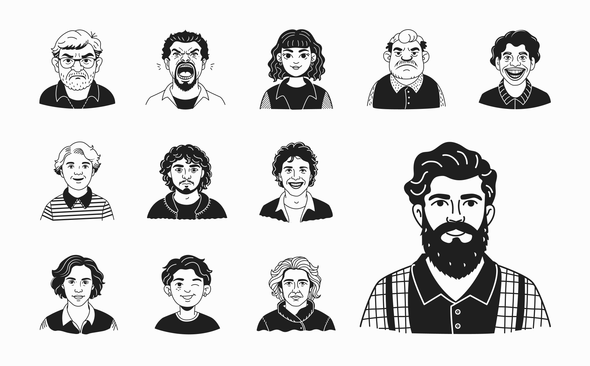 Elevate your projects with the Character Portrait Icon Set This collection features beautifully illustrated vector icons depicting various expressions and emotions, perfect for branding, websites, apps, social media, and more. Whether you’re capturing a smile, a thoughtful look, or a playful mood, these icons offer unmatched versatility and quality.