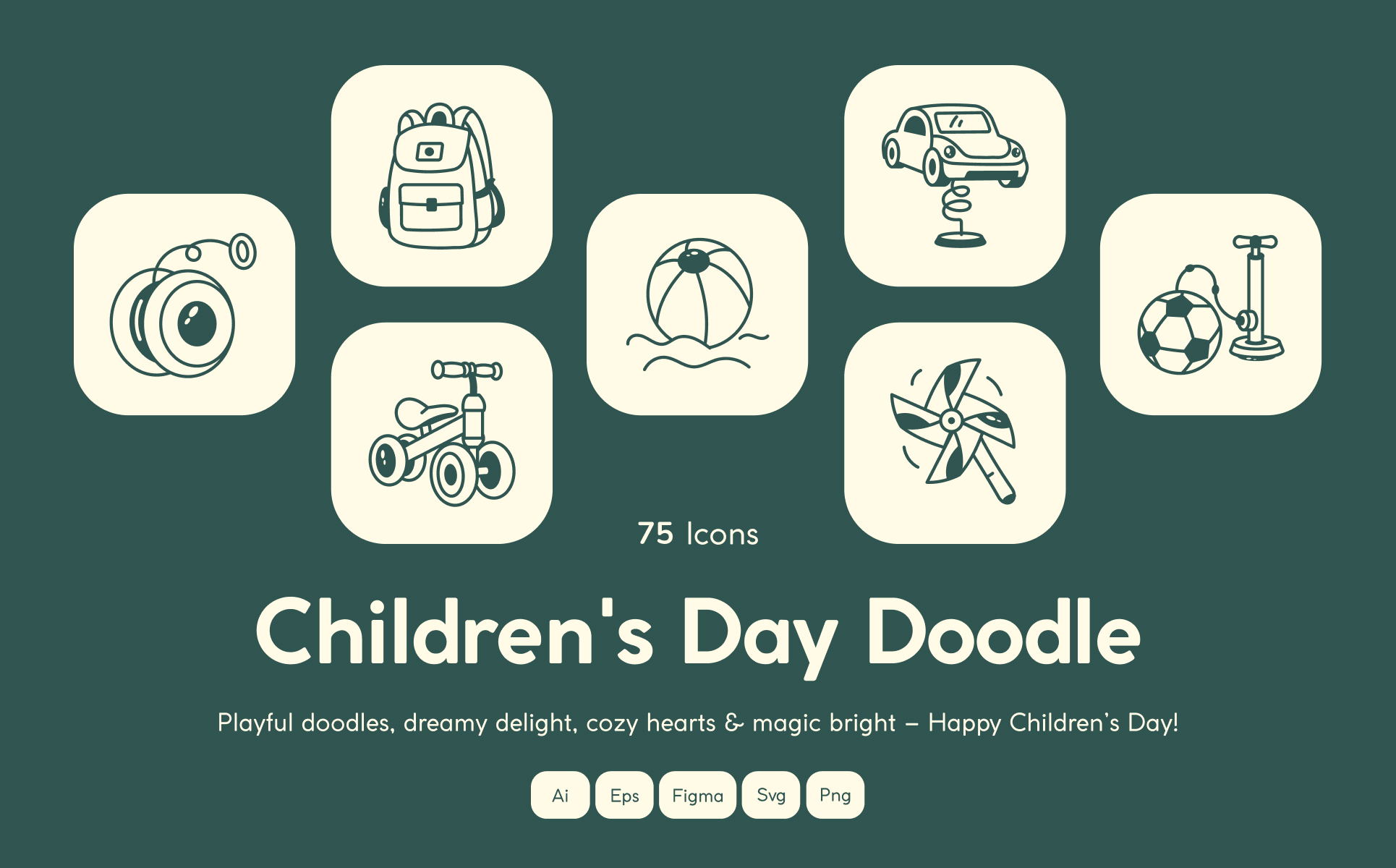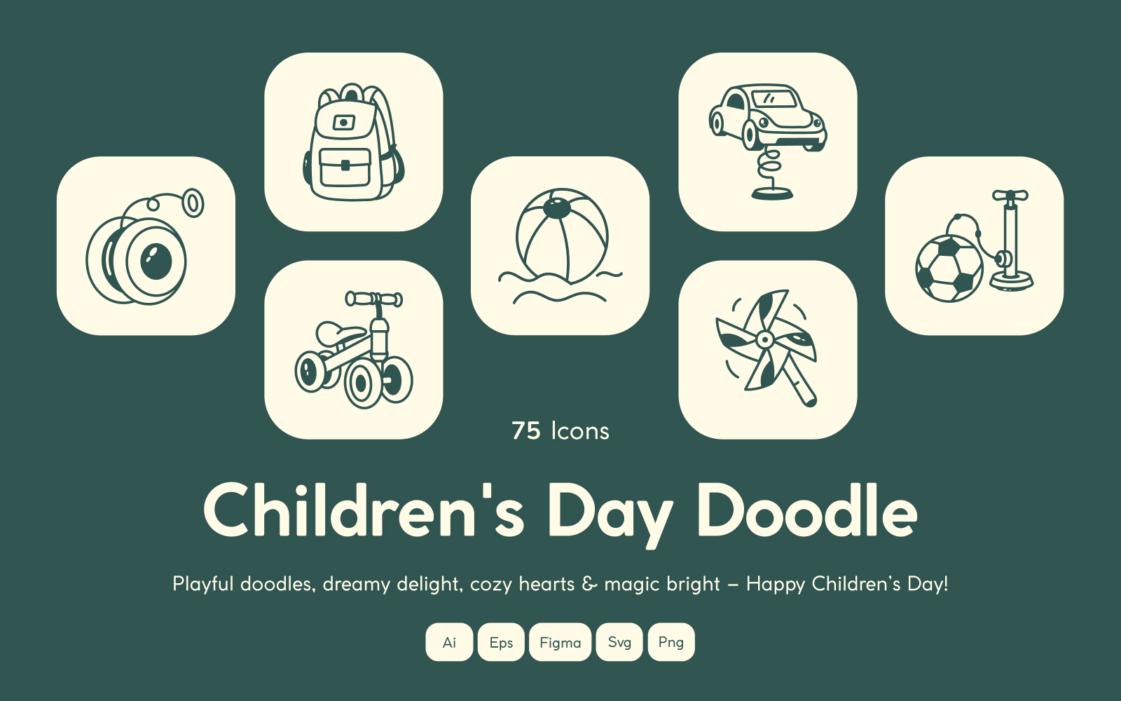Celebrate the joy of childhood with this playful Children’s Day Doodle Icon Set. Bursting with fun, laughter, and creativity, these hand drawn icons are perfect for bringing a cheerful vibe to any project. Whether you’re designing for kids’ events, educational materials, party invites, or playful branding, these doodles instantly add warmth and charm. Let your projects capture the magic of childhood and spread happiness with every design.Highlights: